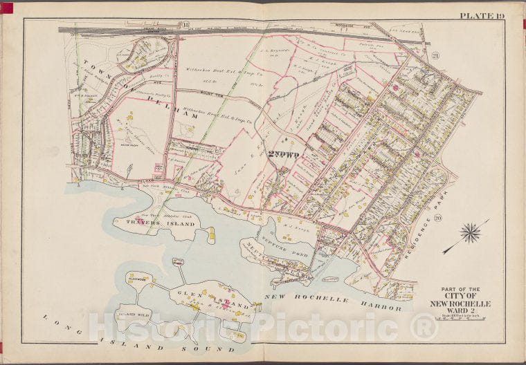 Historic Map - 1910 Westchester County, New York (N.Y.) V. 1, Plate No. 19 [Woodside Ave, Boston Rd, Meadow Lane, New Rochelle Harbor, Long Island Sound, Park Drive