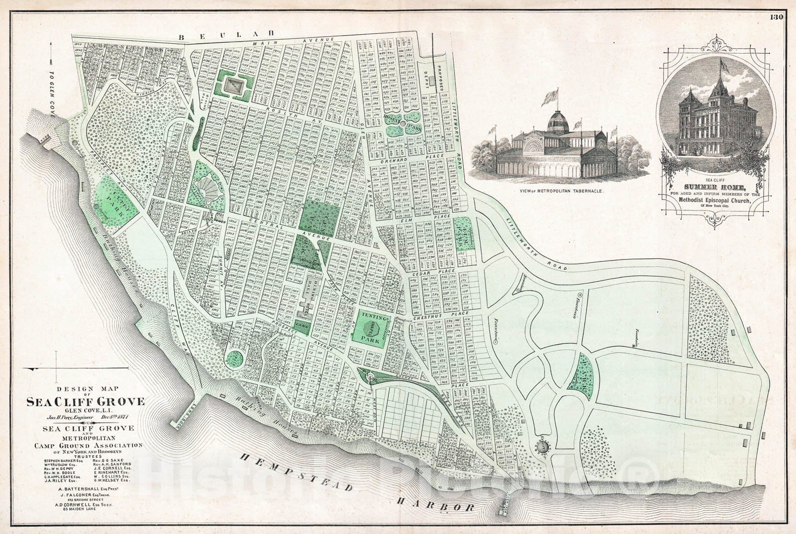 Historic Map : Beers Map of Sea Cliff Grove,Long Island, New York, 1873, Vintage Wall Art