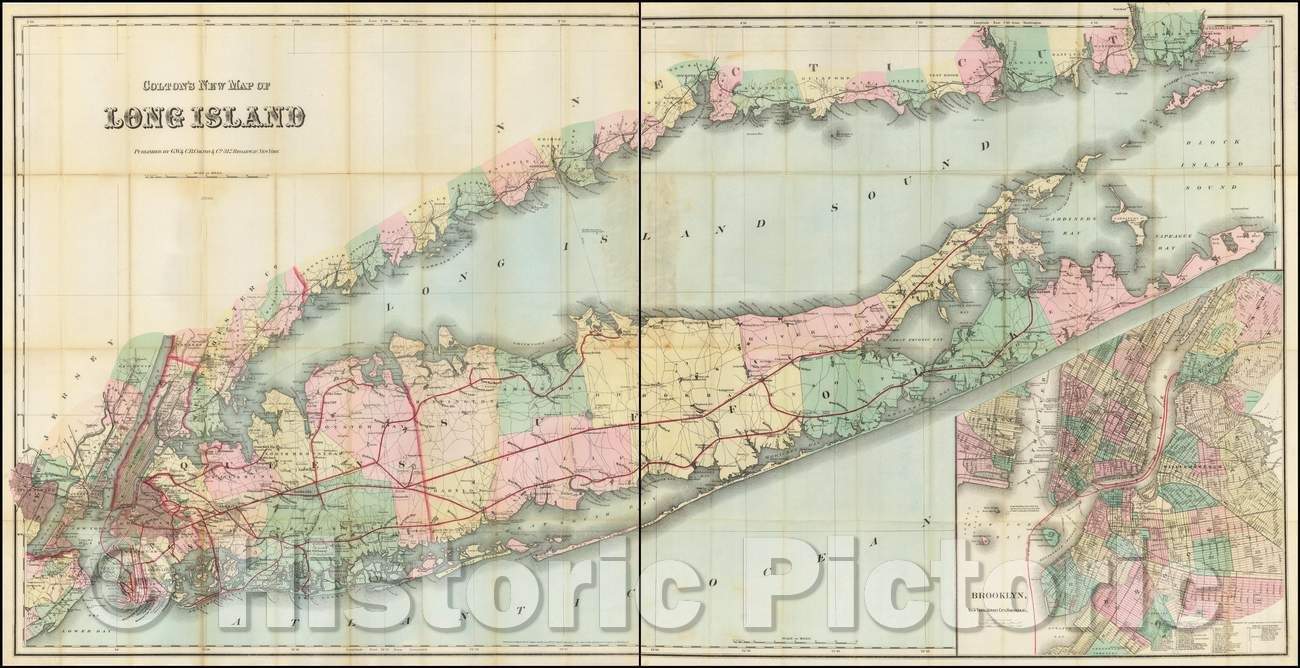 Historic Map - Colton's New Map of Long Island, 1890, G.W. & C.B. Colton - Vintage Wall Art