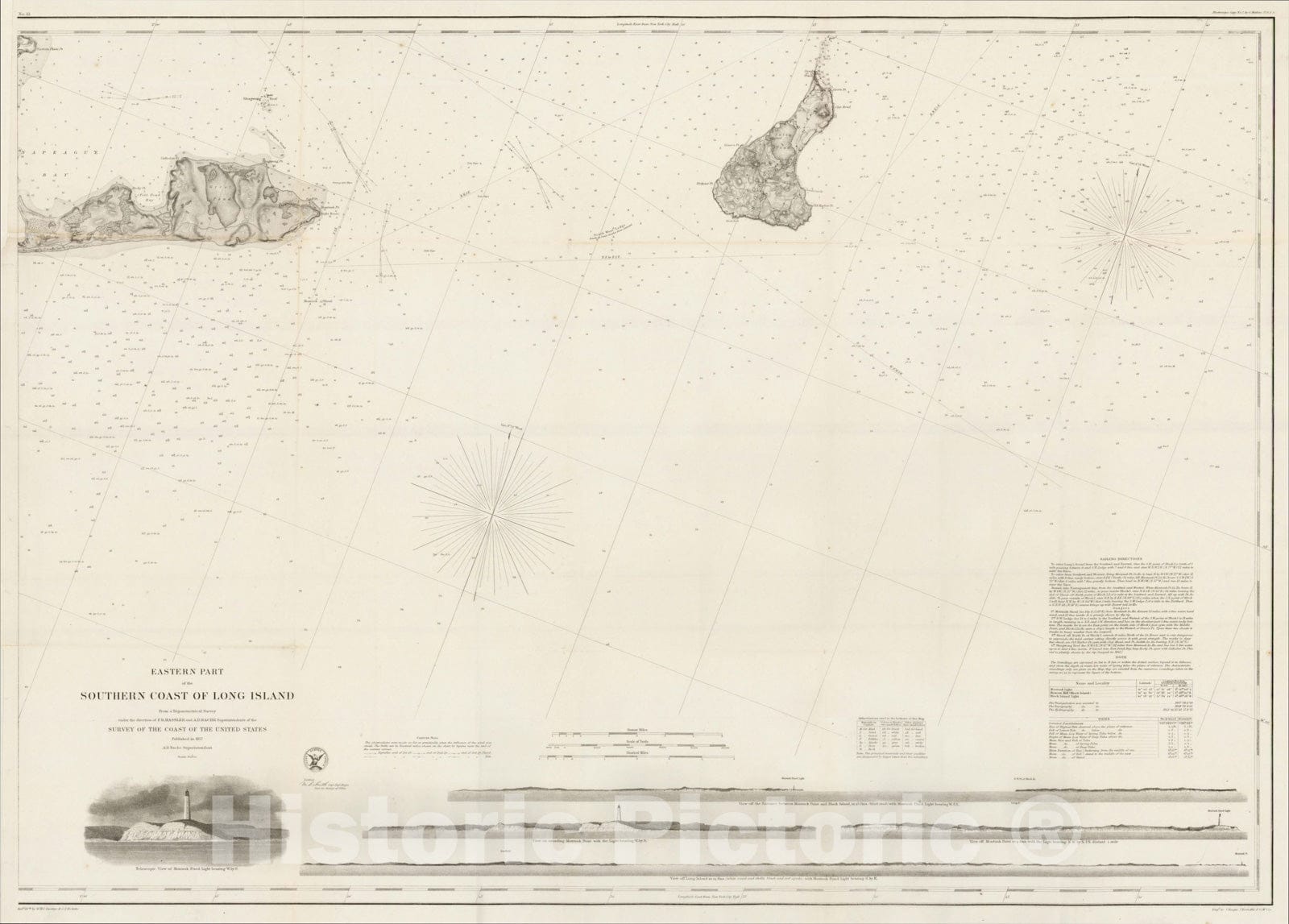 Historic Map : Eastern Part of the Southern Coast of Long Island, 1857, United States Coast Survey, Vintage Wall Art