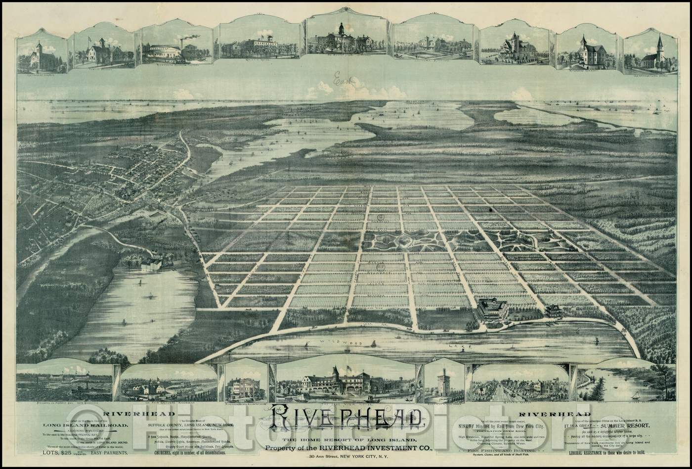 • .Historic Map - Riverhead, The Home Resort of Long Island, 1880, Anonymous - Vintage Wall Art