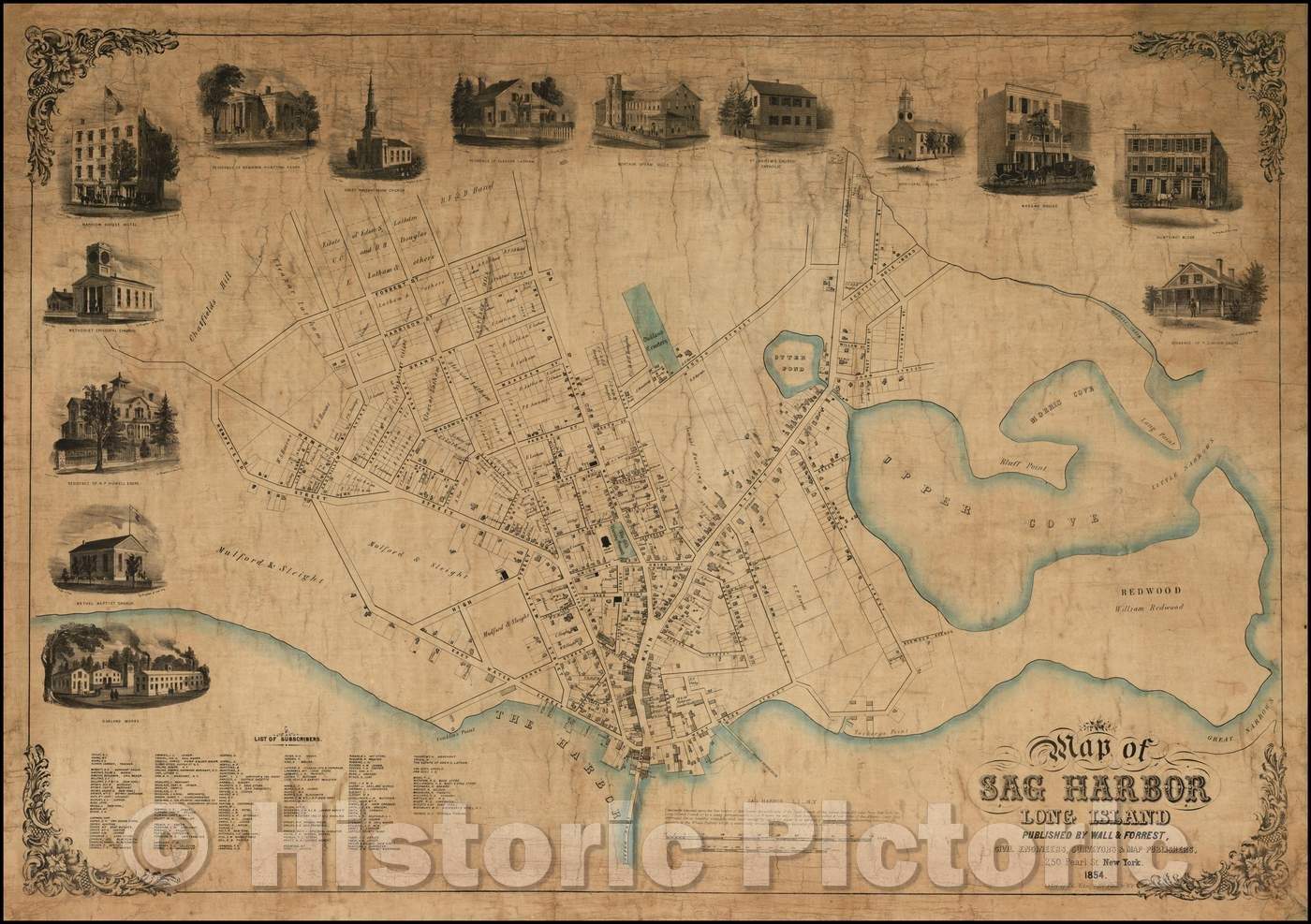 Historic Map - Map of Sag Harbor Long Island, 1854, Wall & Forrest - Vintage Wall Art