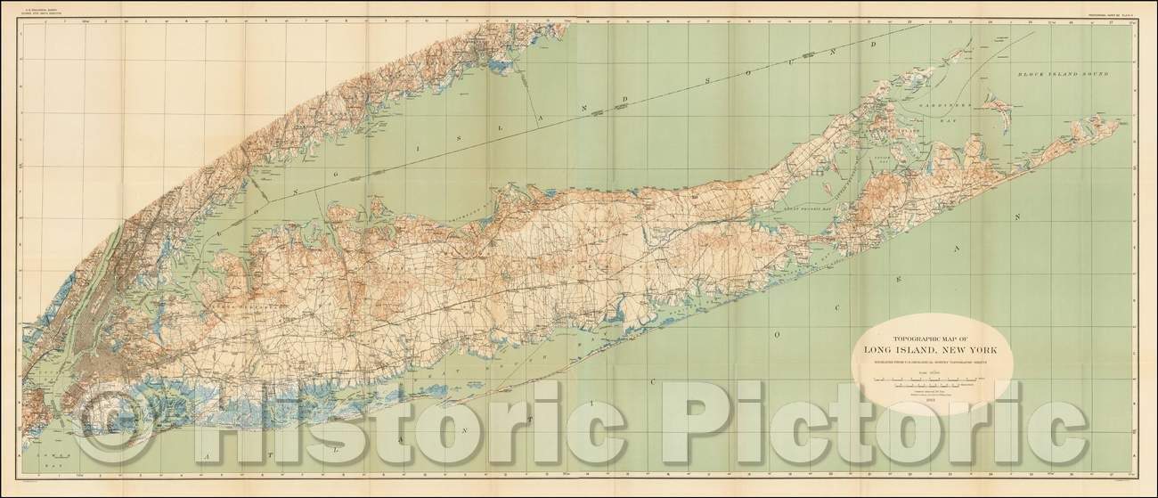 Historic Map - Topographical Map of Long Island, New York Engraved From U.S. Geological Topographic Sheets, 1913, U.S. Geological Survey v1