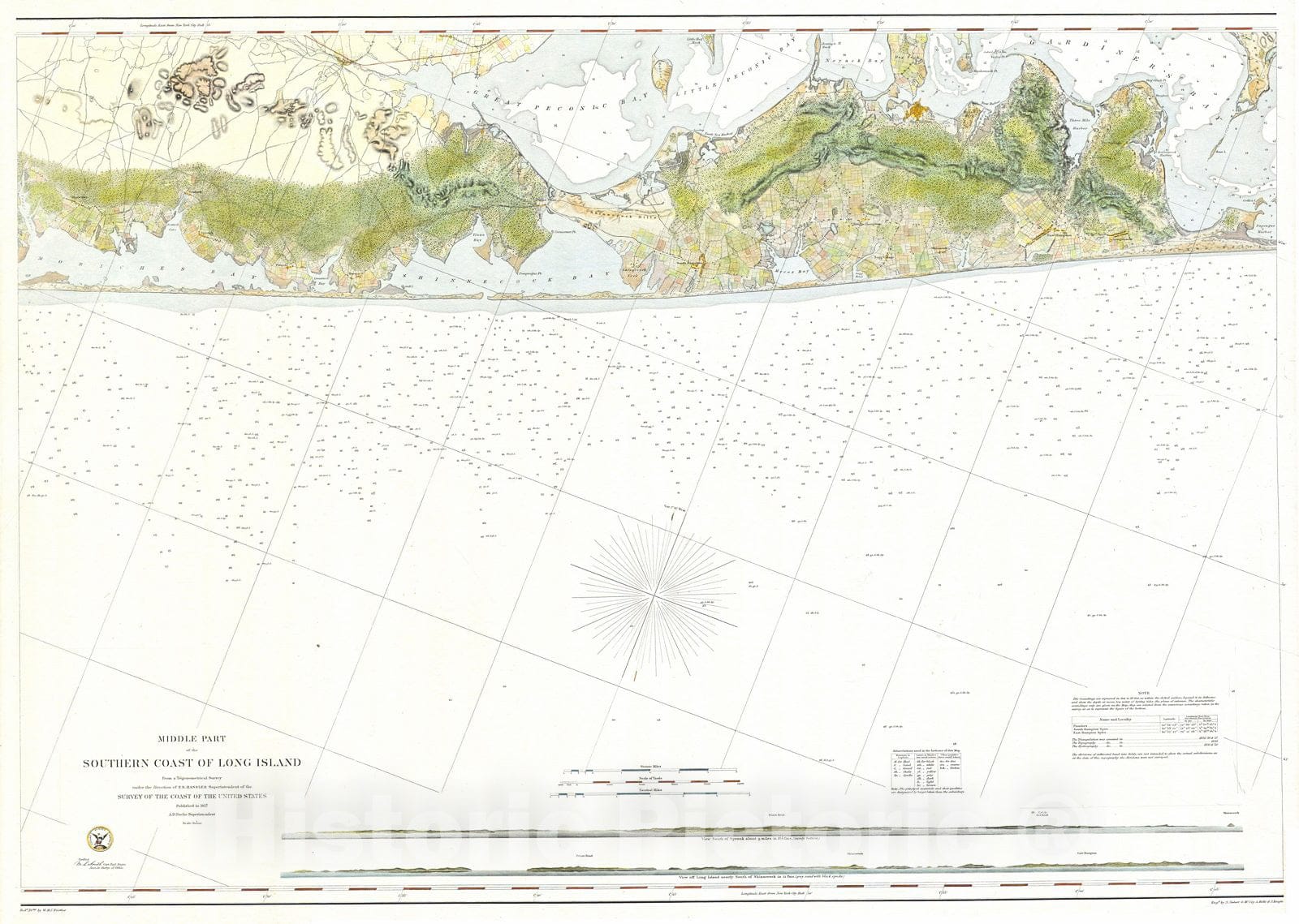 Historic Map : U.S.C.S. Map of Suffolk County, Southern Long Island, New York, 1856, Vintage Wall Art