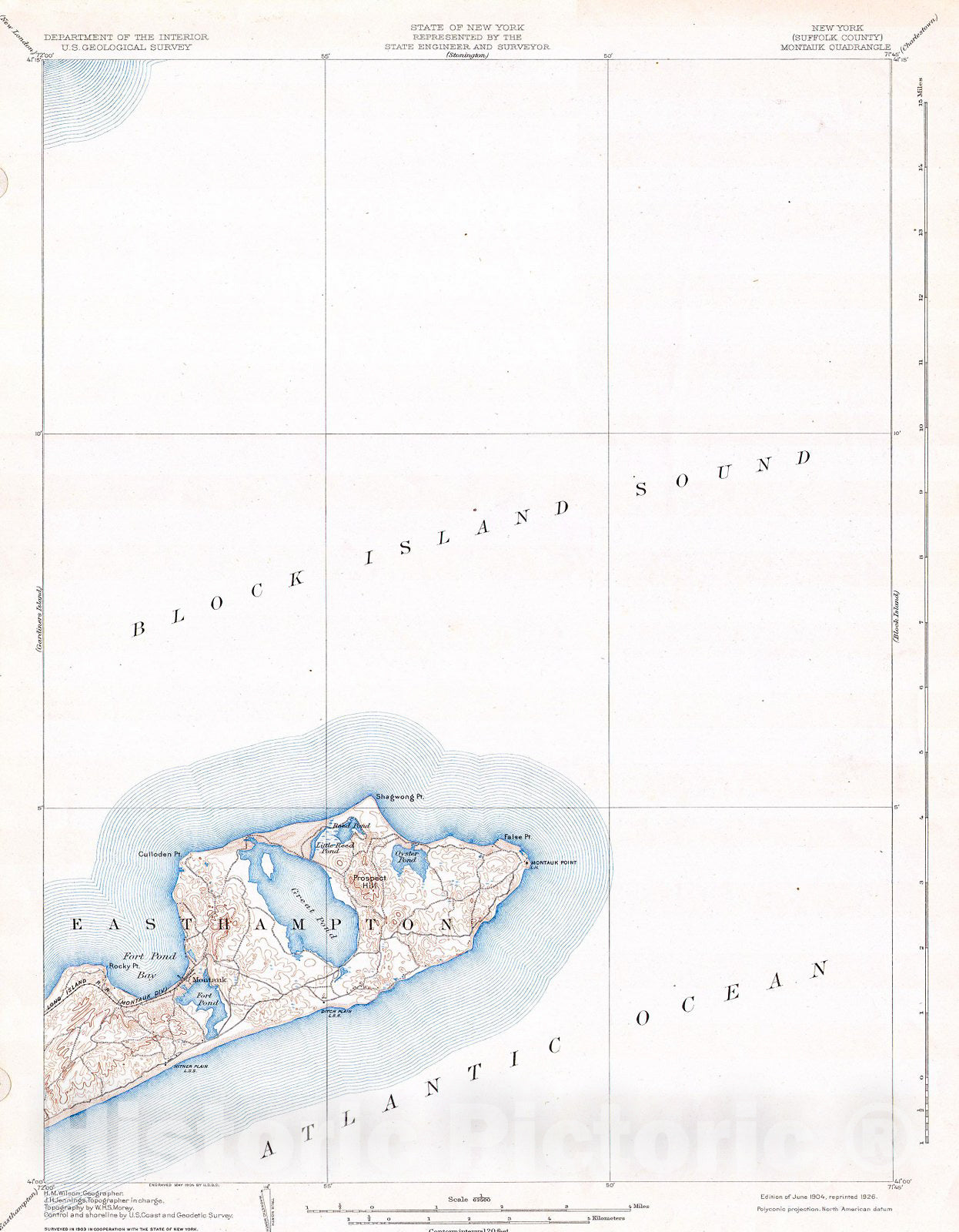 Historic Map : U.S.G.S. Map of Long Island, New York (Montauk & Easthampton), 1904, Vintage Wall Art