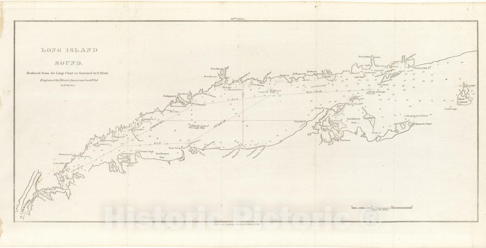 • Historic Map : American Coast Pilot 14th Ed., Long Island Sound 1841 , Vintage Wall Art