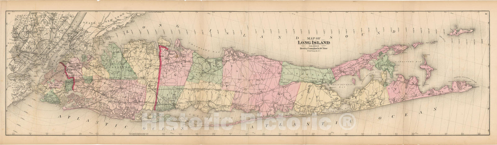 Historic Map : Atlas of Long Island, New York, Long Island 1873 , v2, Vintage Wall Art