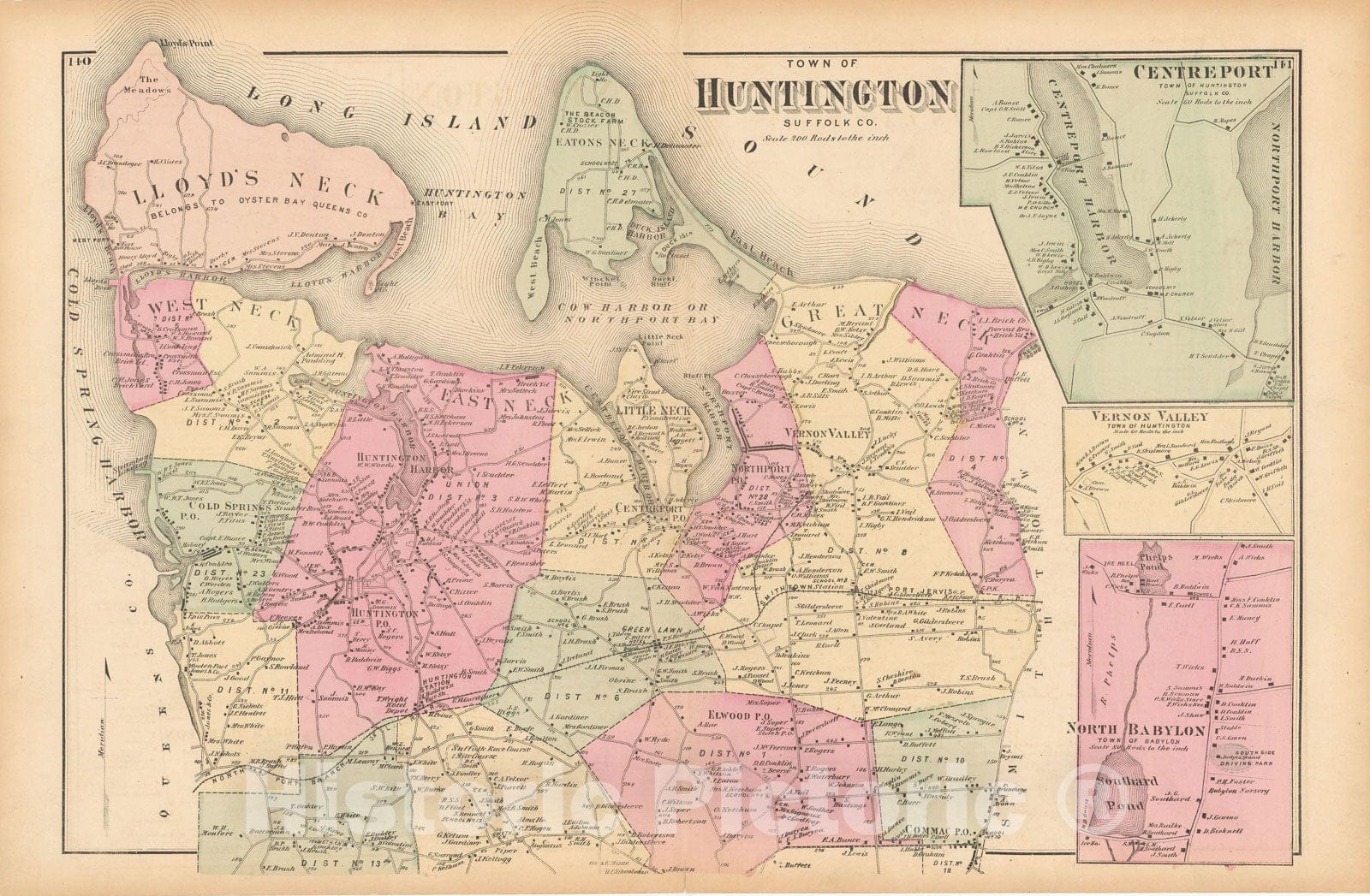 Historic Map : Atlas of Long Island, New York, Babylon & Huntington 1873 , Vintage Wall Art