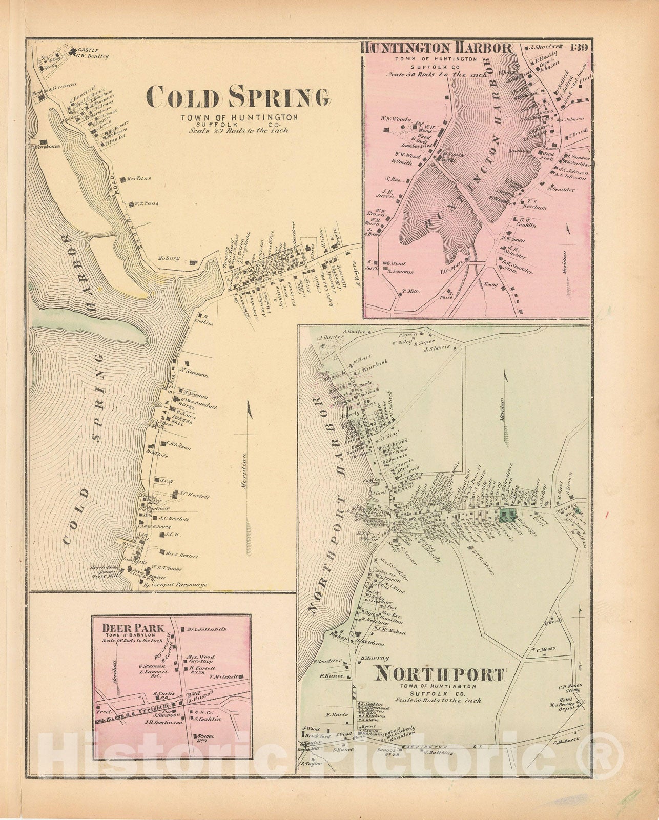 Historic Map : Atlas of Long Island, New York, Babylon & Huntington 1873 , v3, Vintage Wall Art