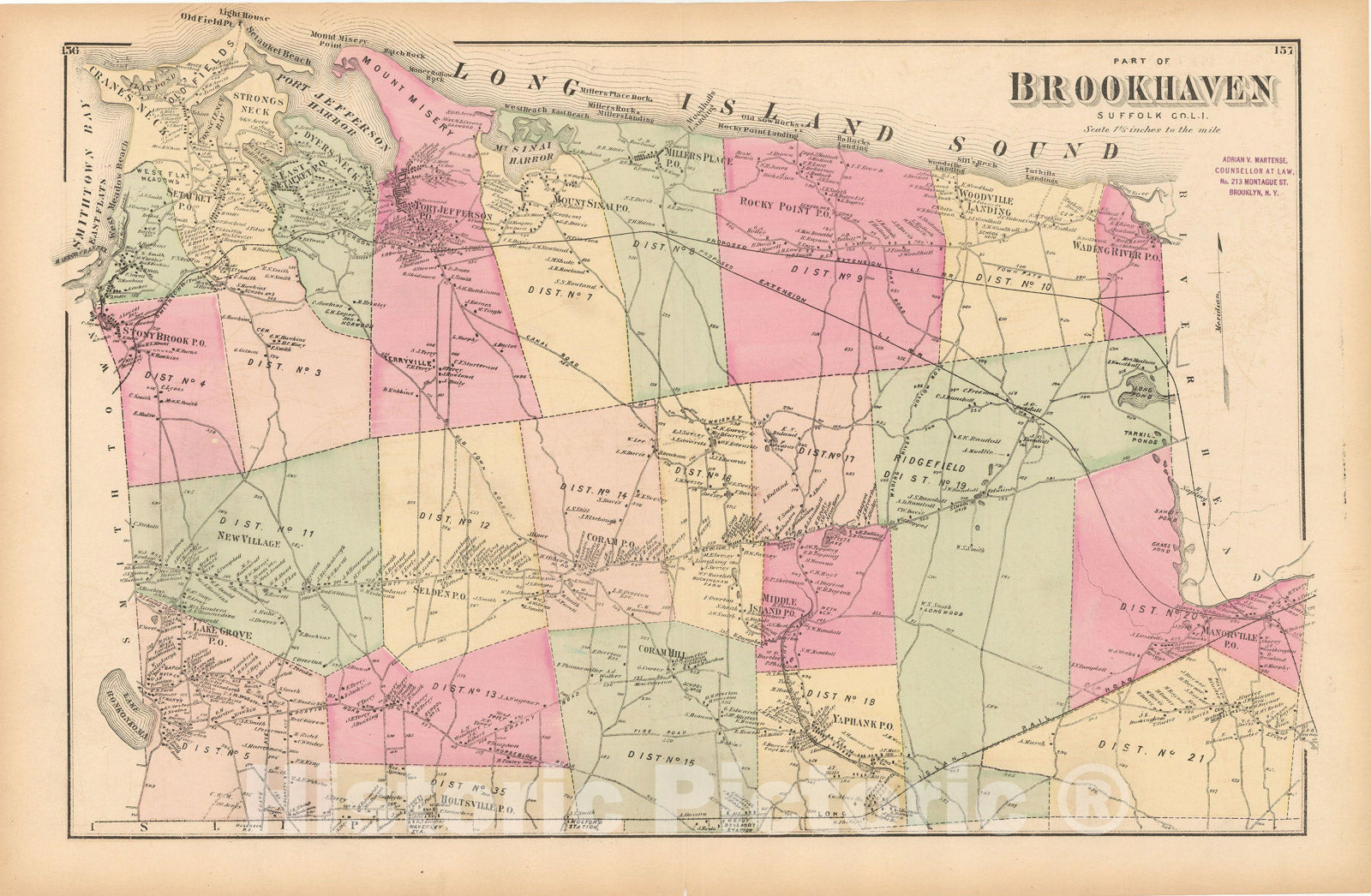 • Historic Map : Atlas of Long Island, New York, Brookhaven 1873 , v2, Vintage Wall Art