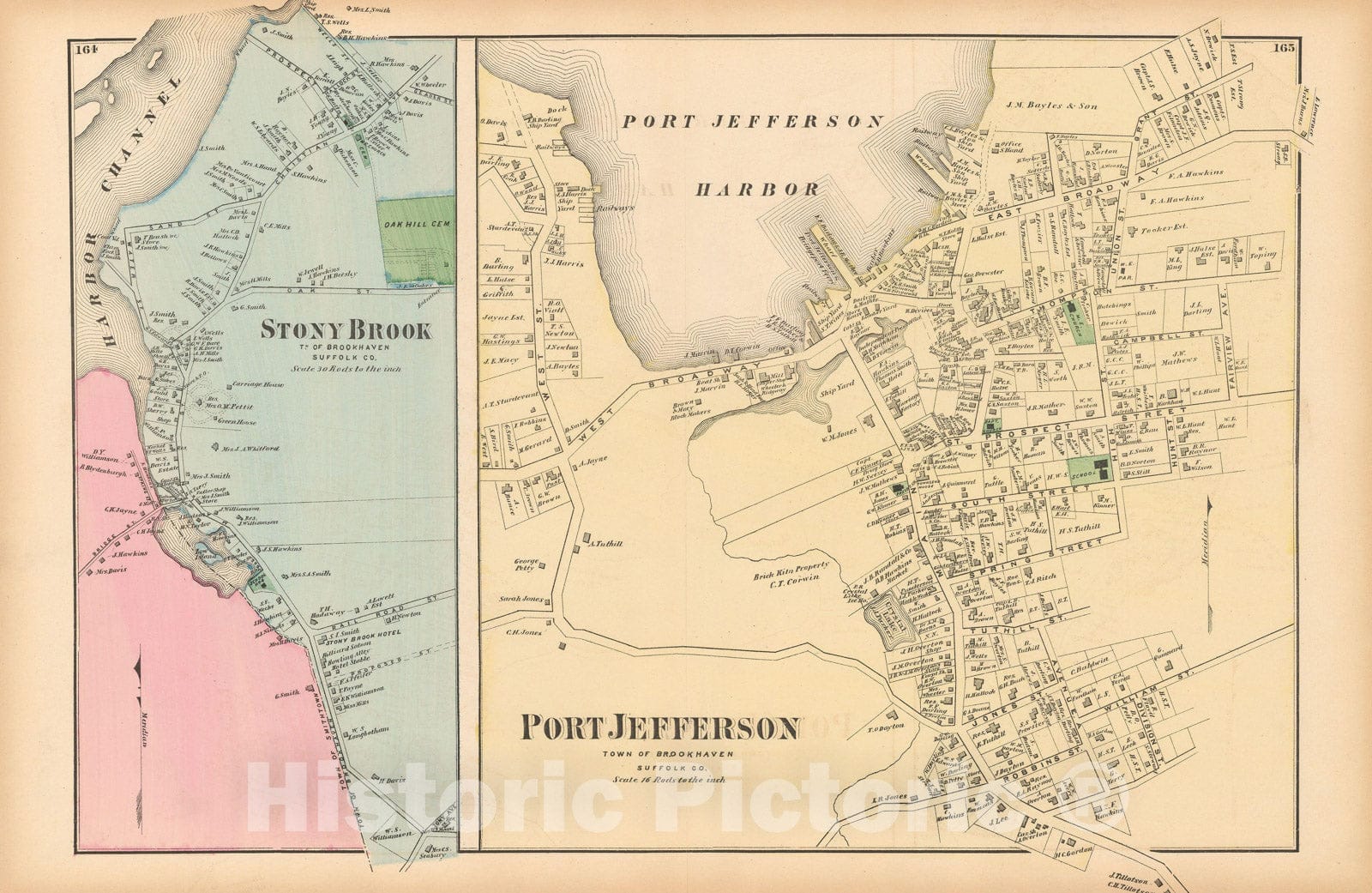 Historic Map : Atlas of Long Island, New York, Brookhaven 1873 , v6, Vintage Wall Art