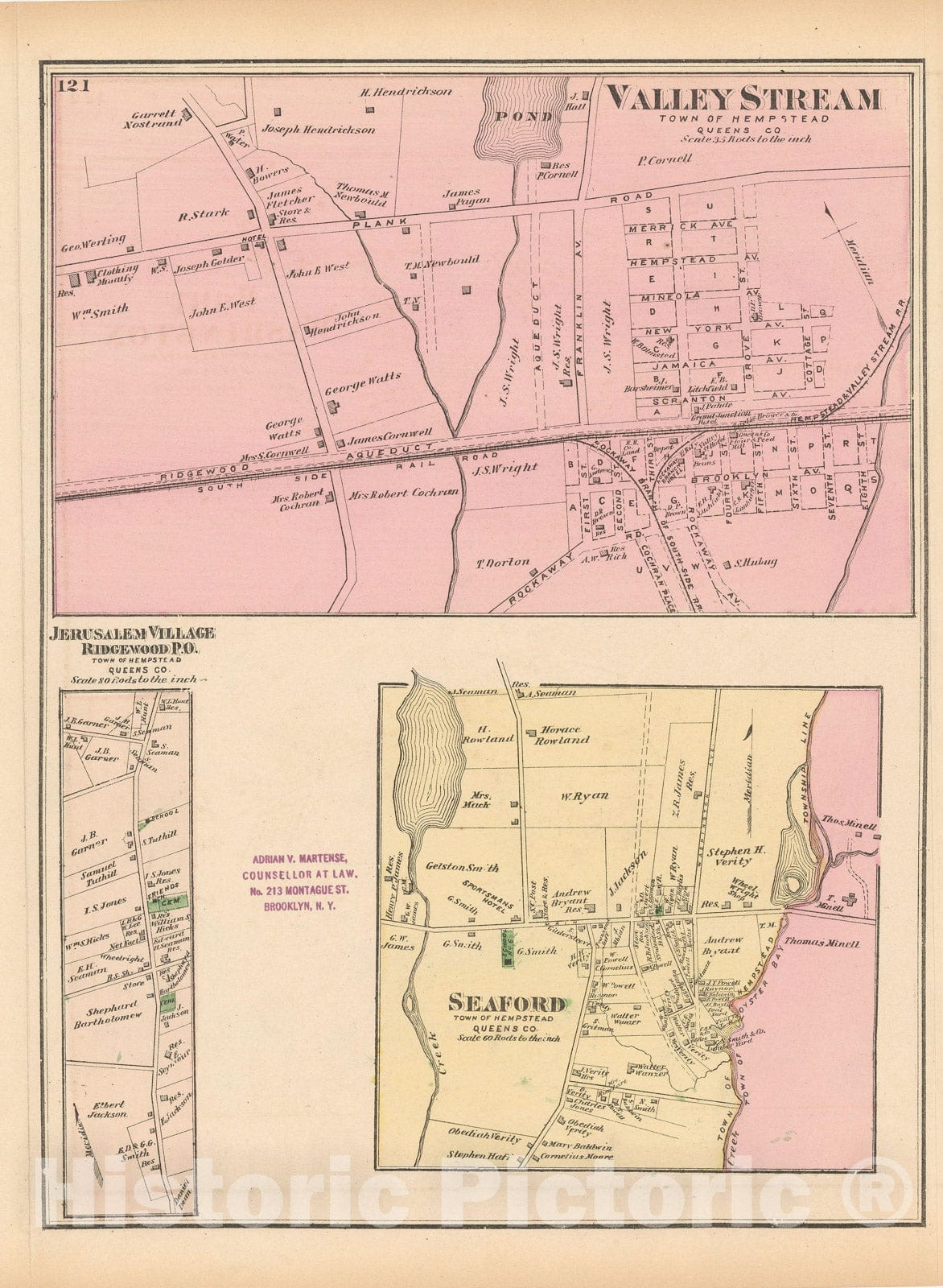 Historic Map : Atlas of Long Island, New York, Hempstead 1873 , v7, Vintage Wall Art
