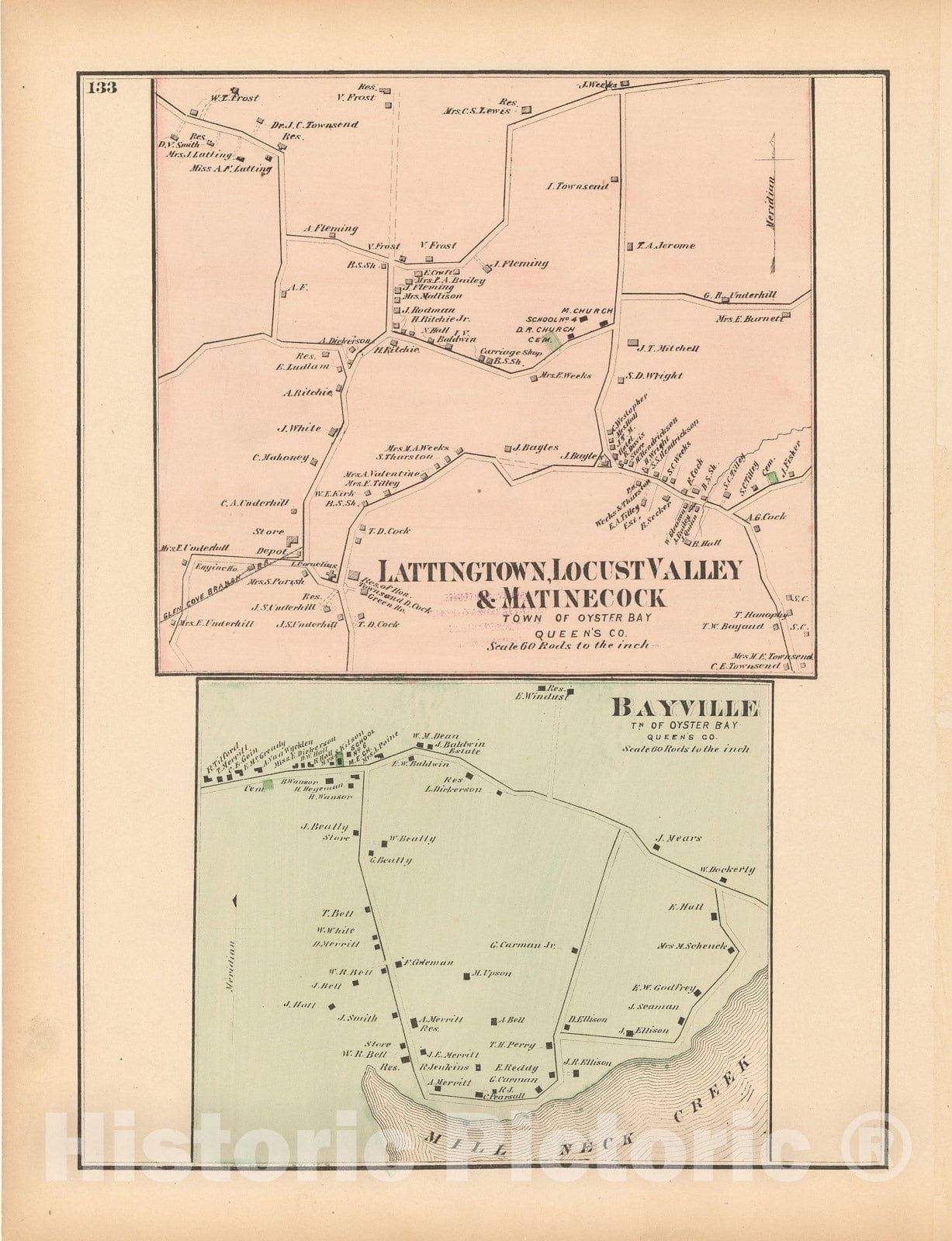 Historic Map : Atlas of Long Island, New York, Oyster Bay 1873 , v4, Vintage Wall Art