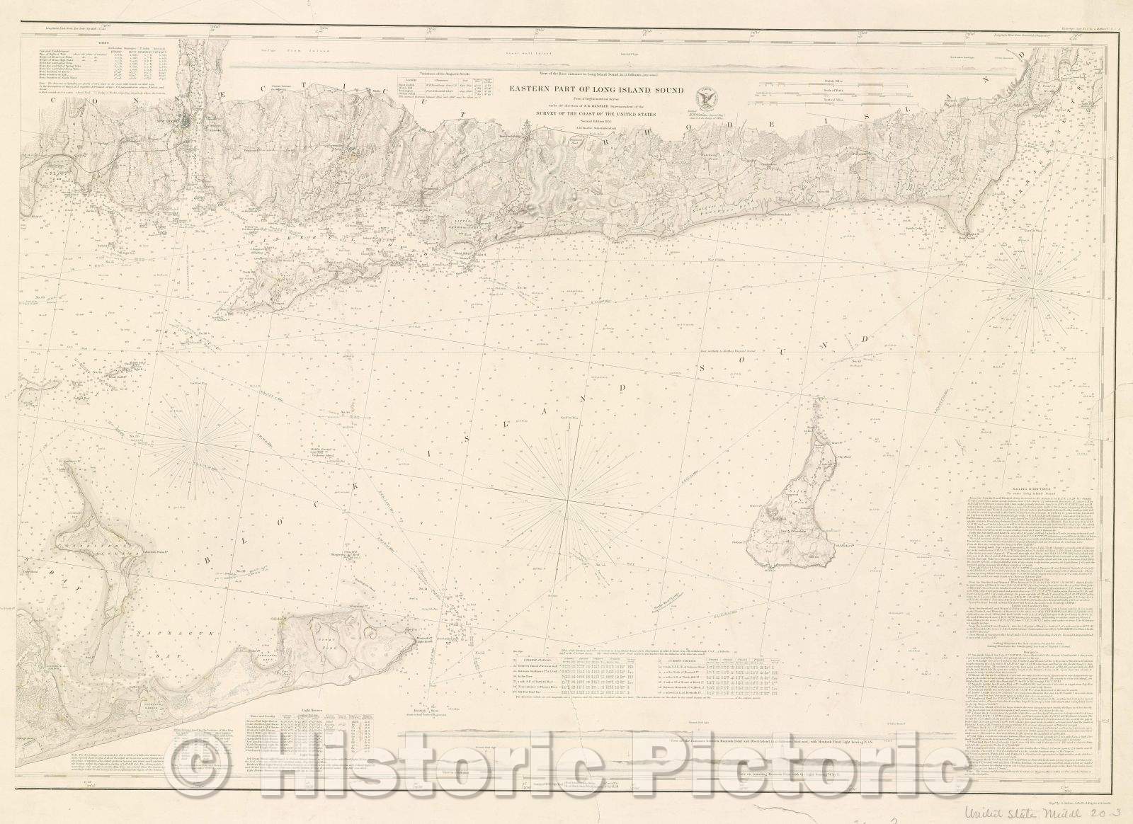Historic Map : Eastern Part of Long Island Sound From a Trigonometric Survey under the direction of E. R. Hassler Superintendent of the Survey of the Coast, 1855 , Vintage Wall Art