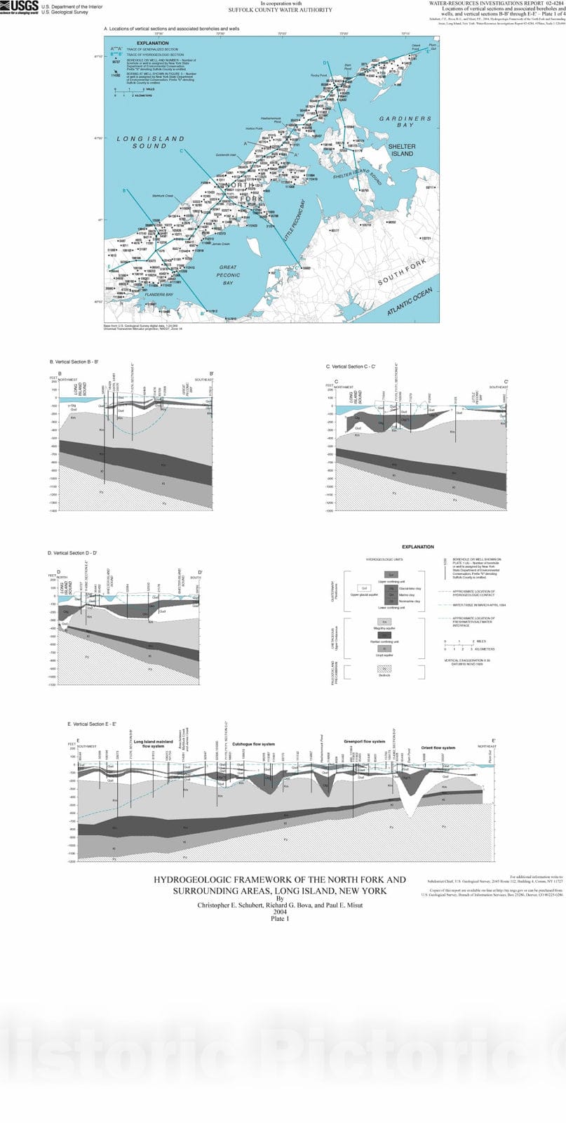 Map : Hydrogeologic framework of the North Fork and surrounding areas, Long Island, New York, 2004 Cartography Wall Art :