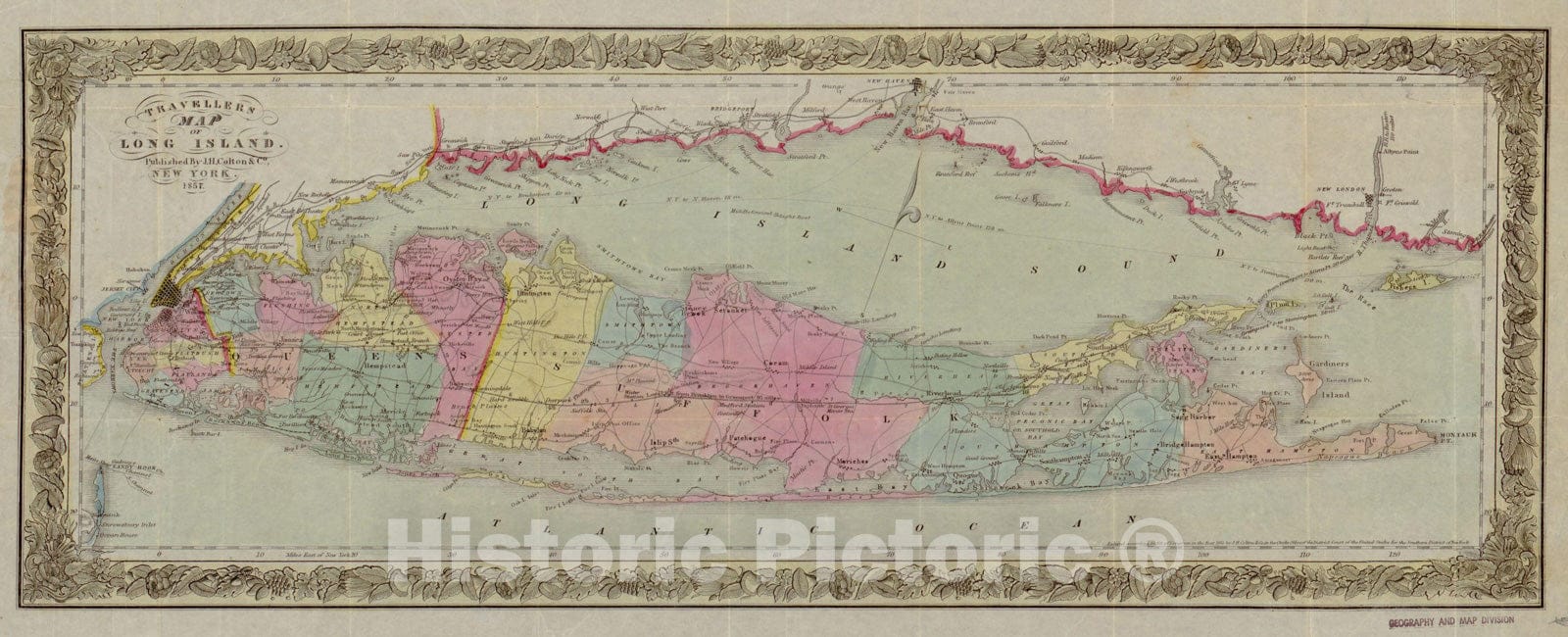 • .Historic Map : Long Island 1857 , Vintage Wall Art