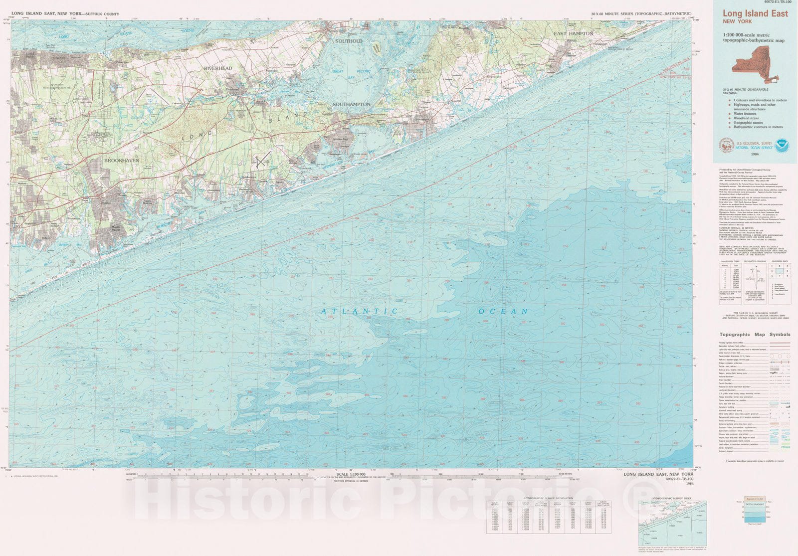 Historic Nautical Map - Long Island East, NY, 1984 NOAA Topographic Bathymetric Historic Nautical Map - Vintage Wall Art