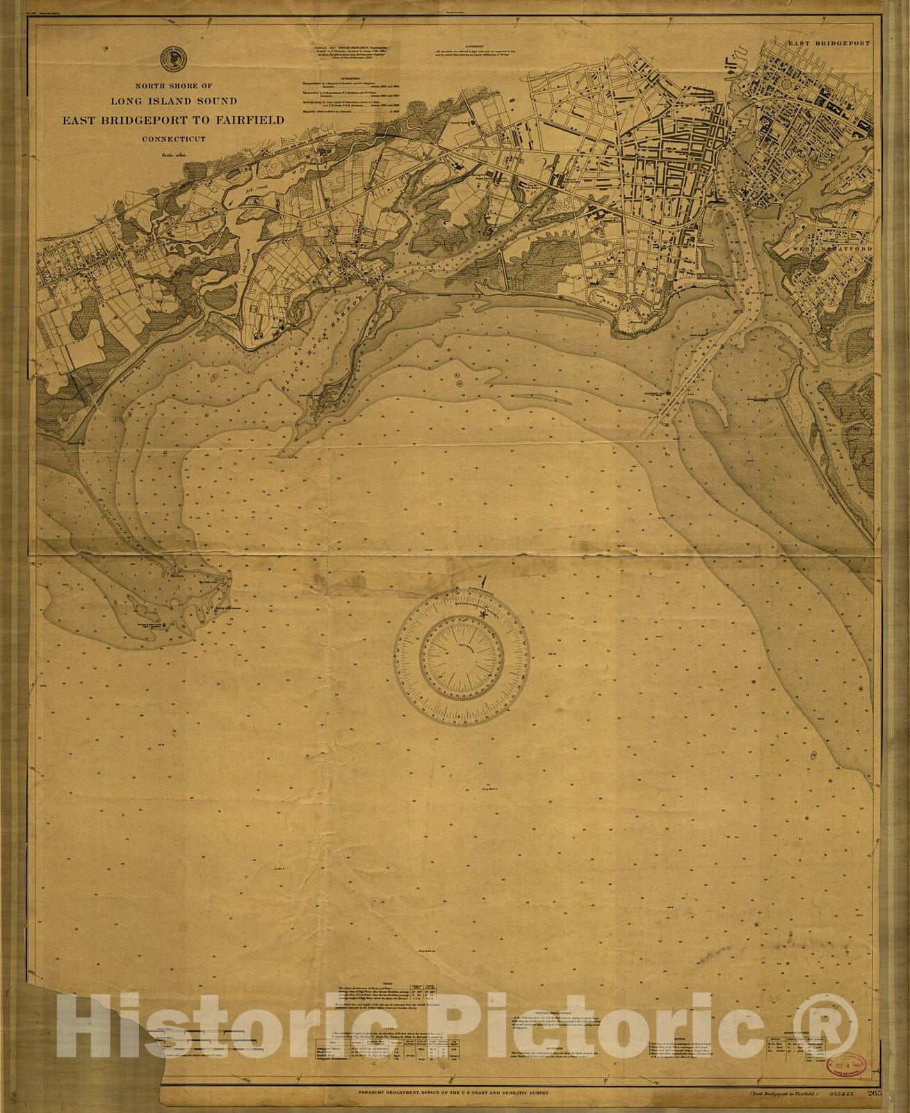 Historic Nautical Map - Long Island Sound : East Bridgeport To Fairfield, 1898 NOAA Chart - Vintage Wall Art