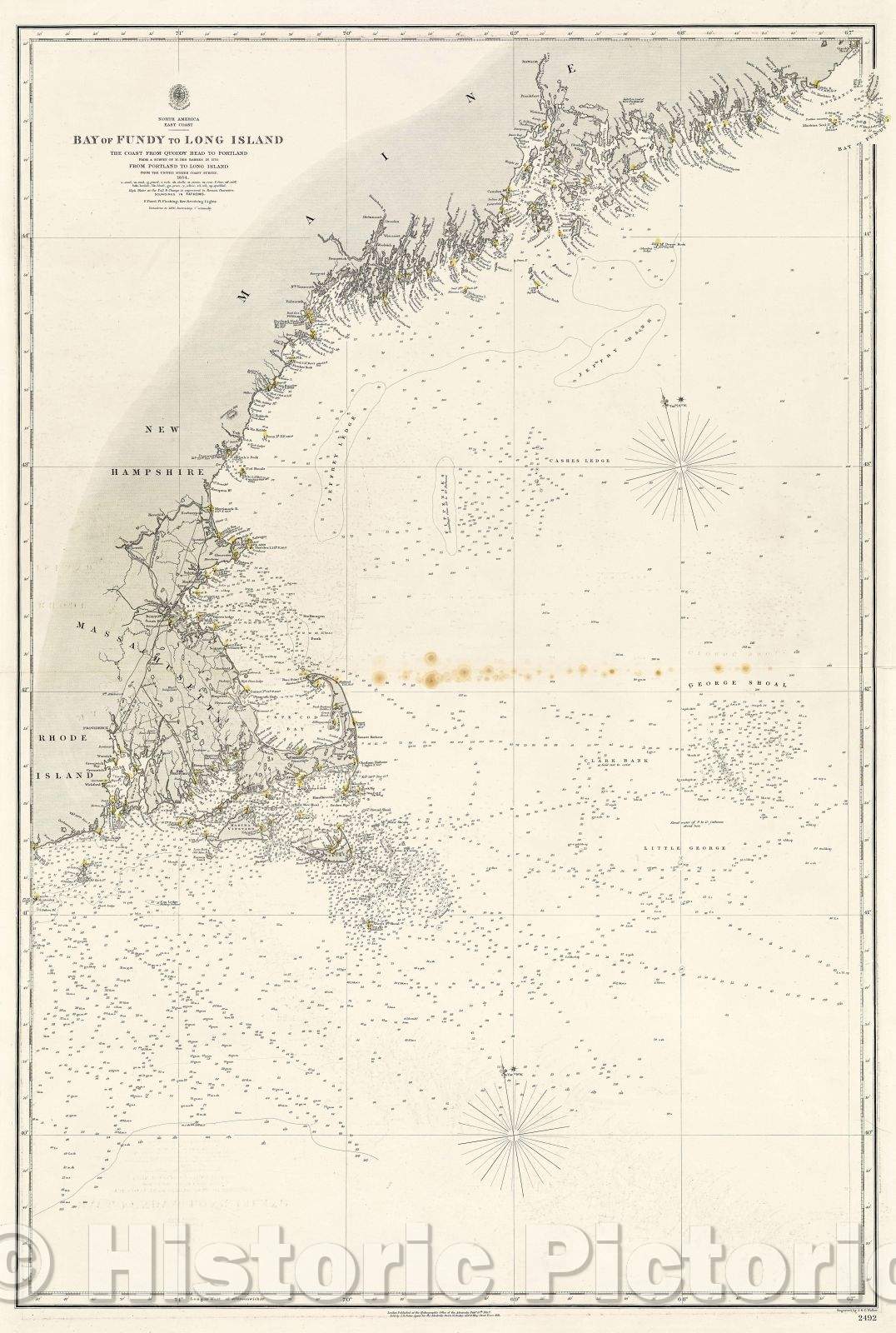 Historic Map : North America East Coast Bay of Fundy to Long Island the Coast from Quoddy Head to Portland from a Survey of M.Des Barres, 1857 , Vintage Wall Art