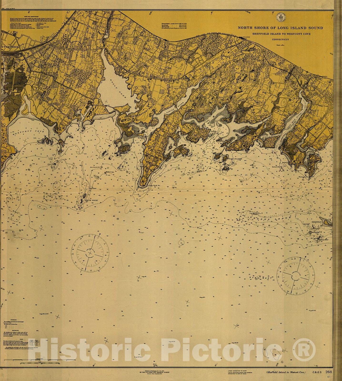 • .Historic Nautical Map - North Shore Of Long Island Sound : Sheffield Island To Westcott Cove, 1915 NOAA Chart - Vintage Wall Art