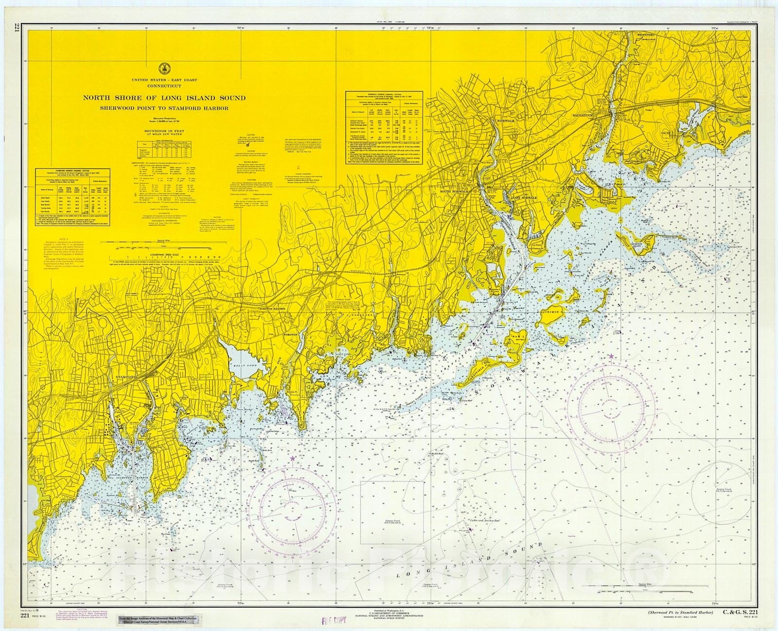 Historic Nautical Map - North Shore Of Long Island Sound, Sherwood Point To Stamford Harbor, Connecticut, 1970 NOAA Chart - Vintage Wall Art