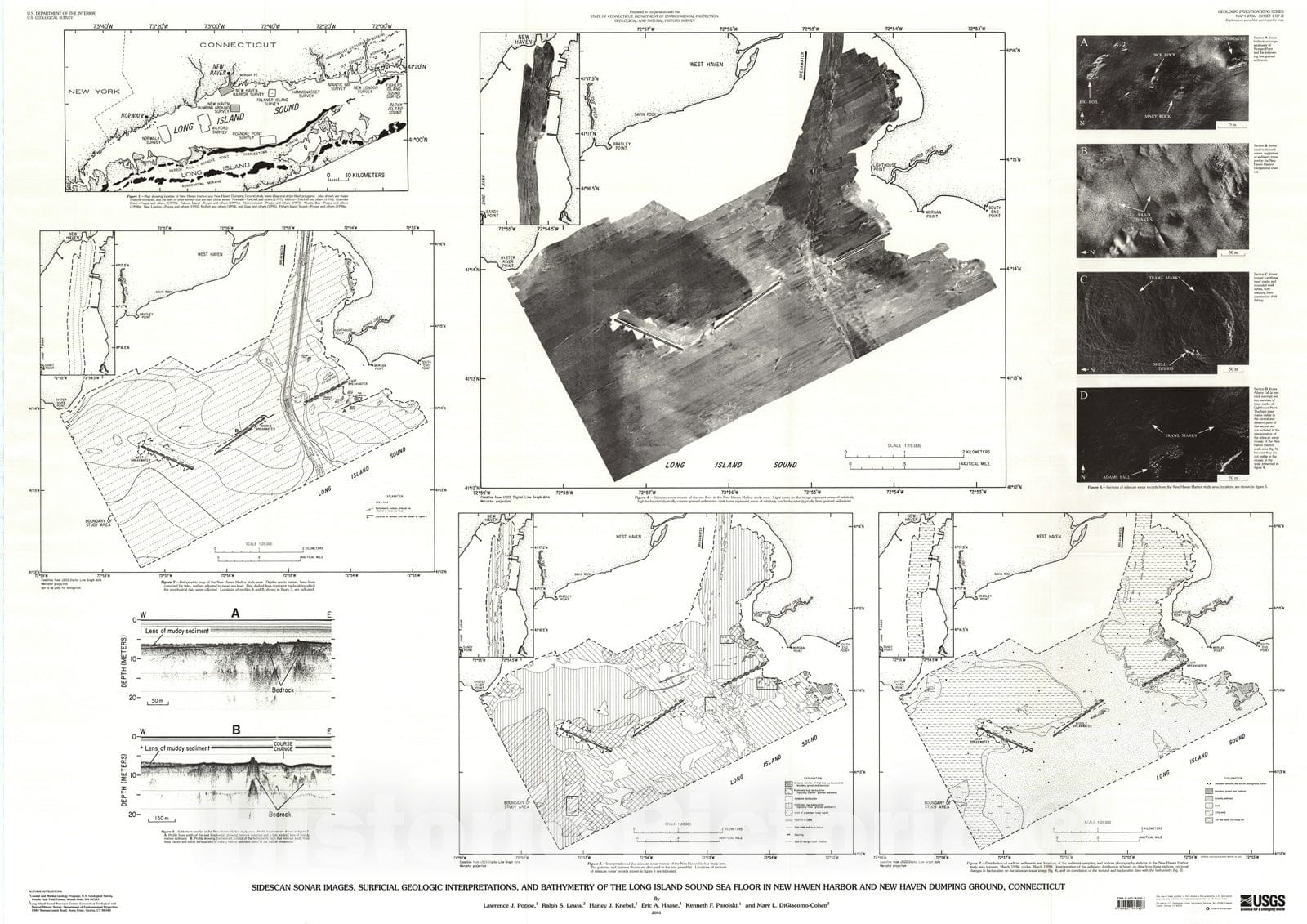 Map : Sidescan sonar images, surficial geologic interpretations, and bathymetry of the Long Island Sound sea floor in New Haven Harbor,, 2000 Cartography Wall Art :