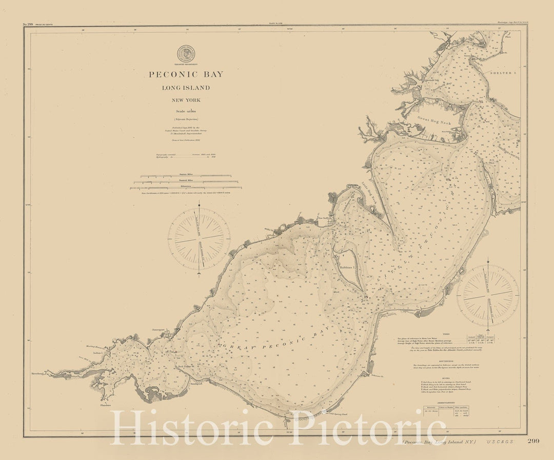 Map : Long Island, New York 1893, Peconic Bay : Long Island, New York , Antique Vintage Reproduction