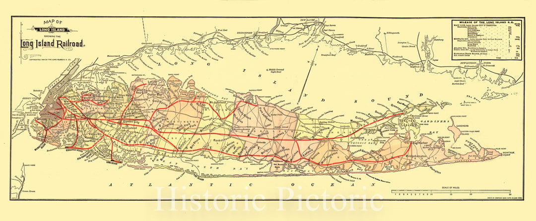 Historic 1882 Map - Map of Long Island Showing The Long Island Railroad and its leased Lines.