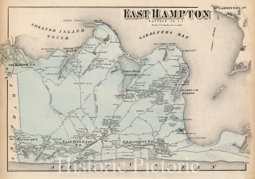 Historic Map : 1873 East Hampton. Long Island. - Vintage Wall Art