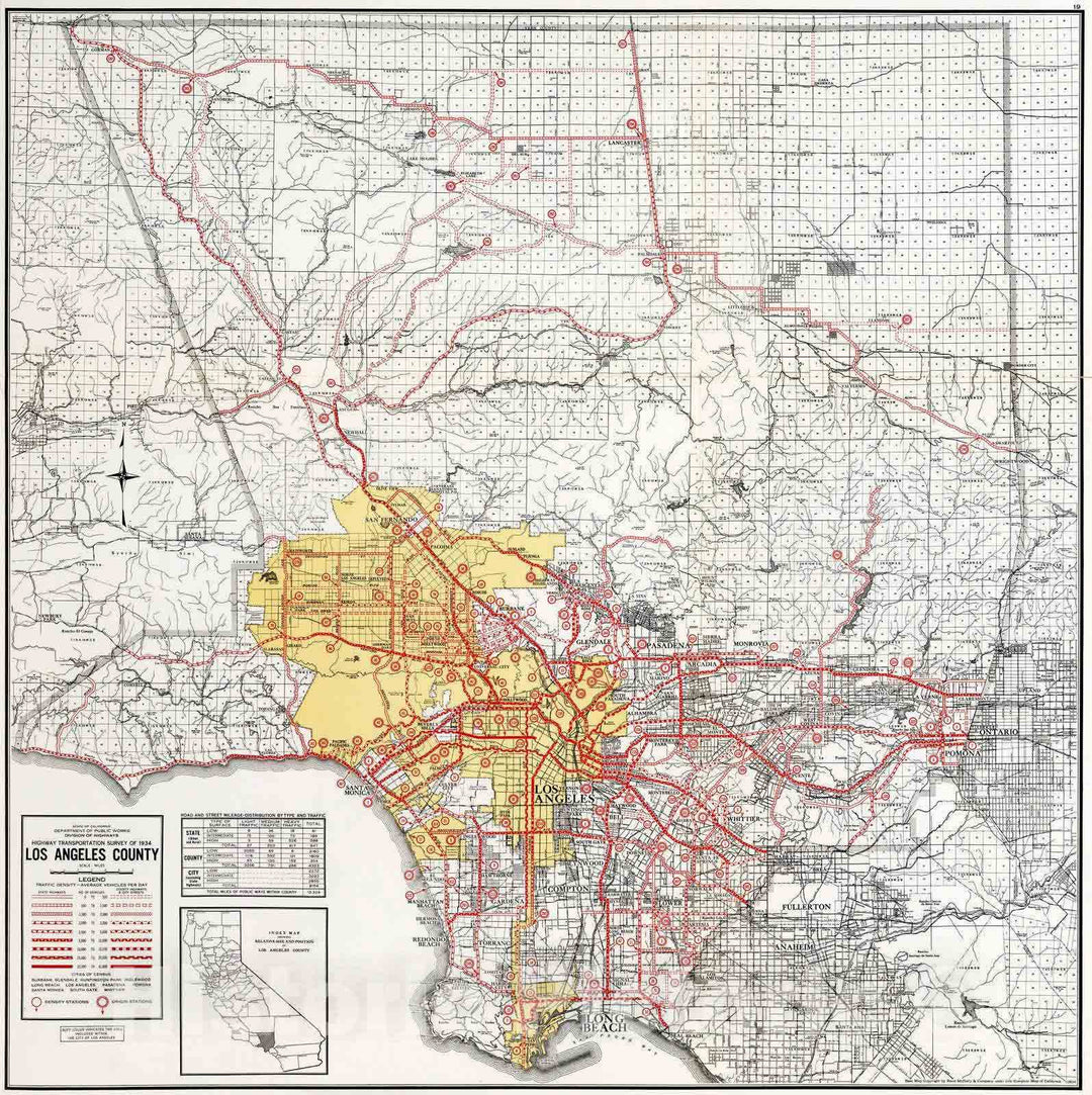 Historic Map - 1935 Los Angeles County. - Vintage Wall Art