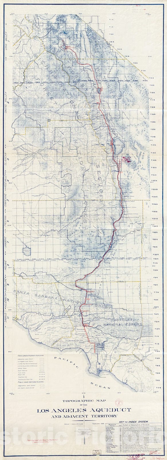 Historic 1908 Map - Topographic map of The Los Angeles Aqueduct and Adjacent Territory