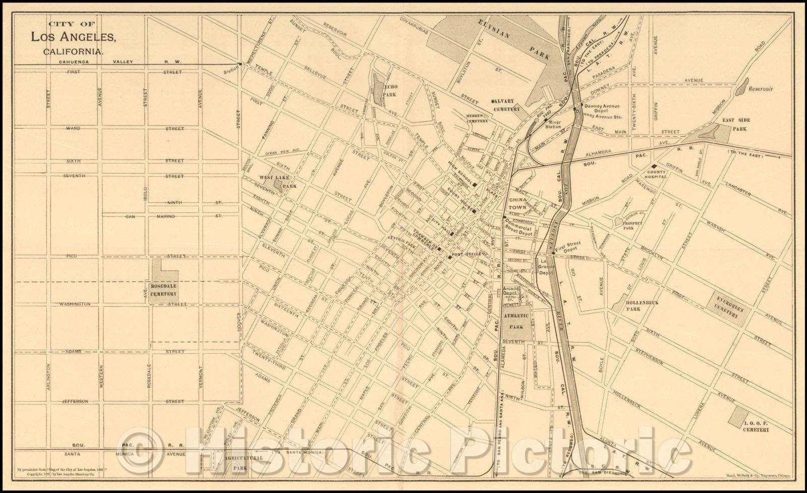Historic Map - City of Los Angeles (with National Education Association Convention promotional pamphlet), 1899, Rand McNally & Company - Vintage Wall Art