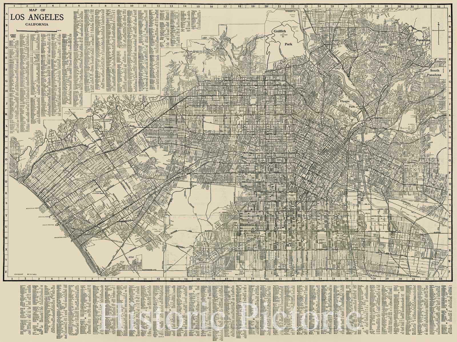Historic Map : Hill's Los Angeles City Map and Tourist Guide 194 Edition, 1940, Hill Map Company, Vintage Wall Art