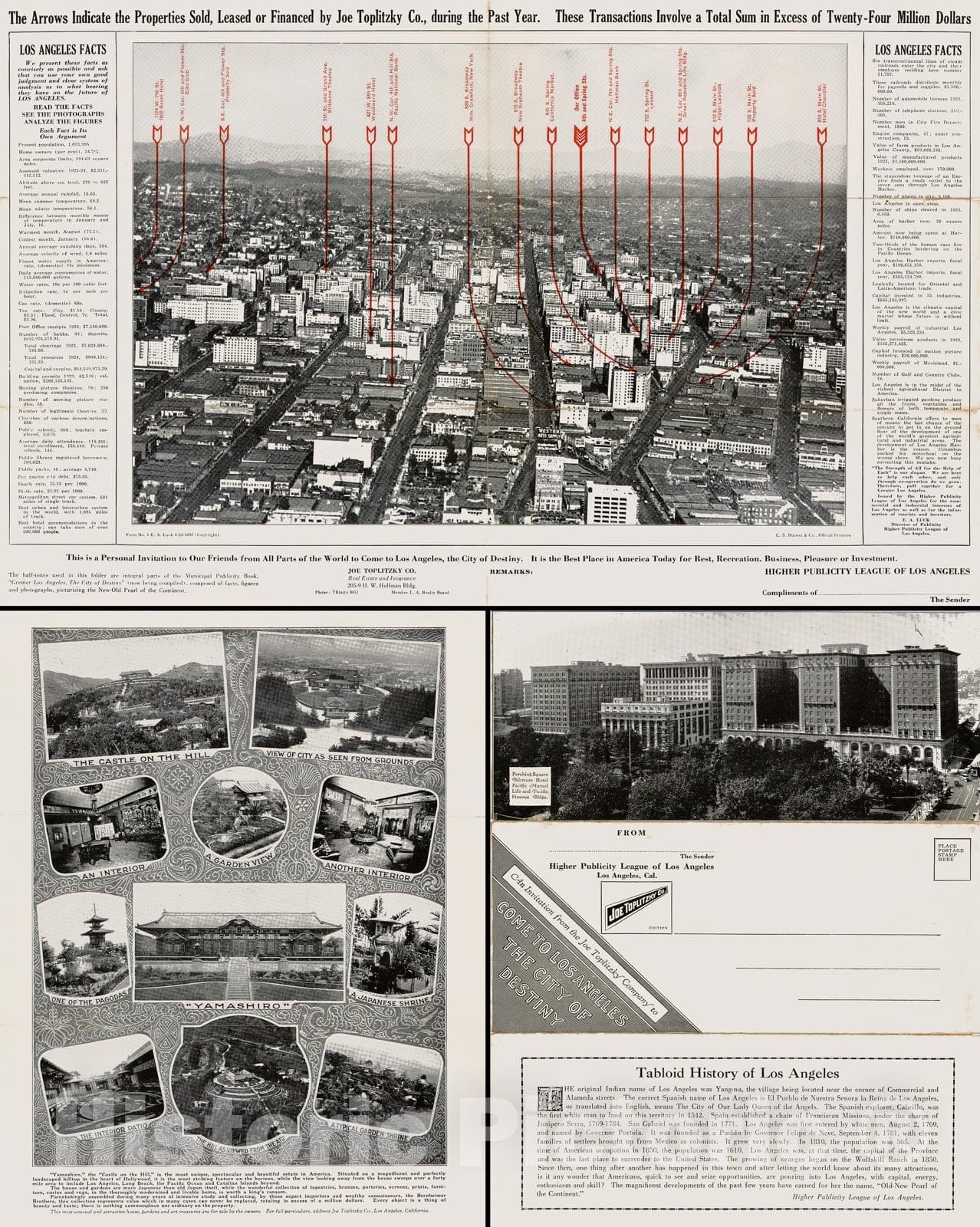 Historic Map - An Invitation From Joe Toplitzky Co. To Come To Los Angeles The City of Destiny, 1920, - Vintage Wall Art