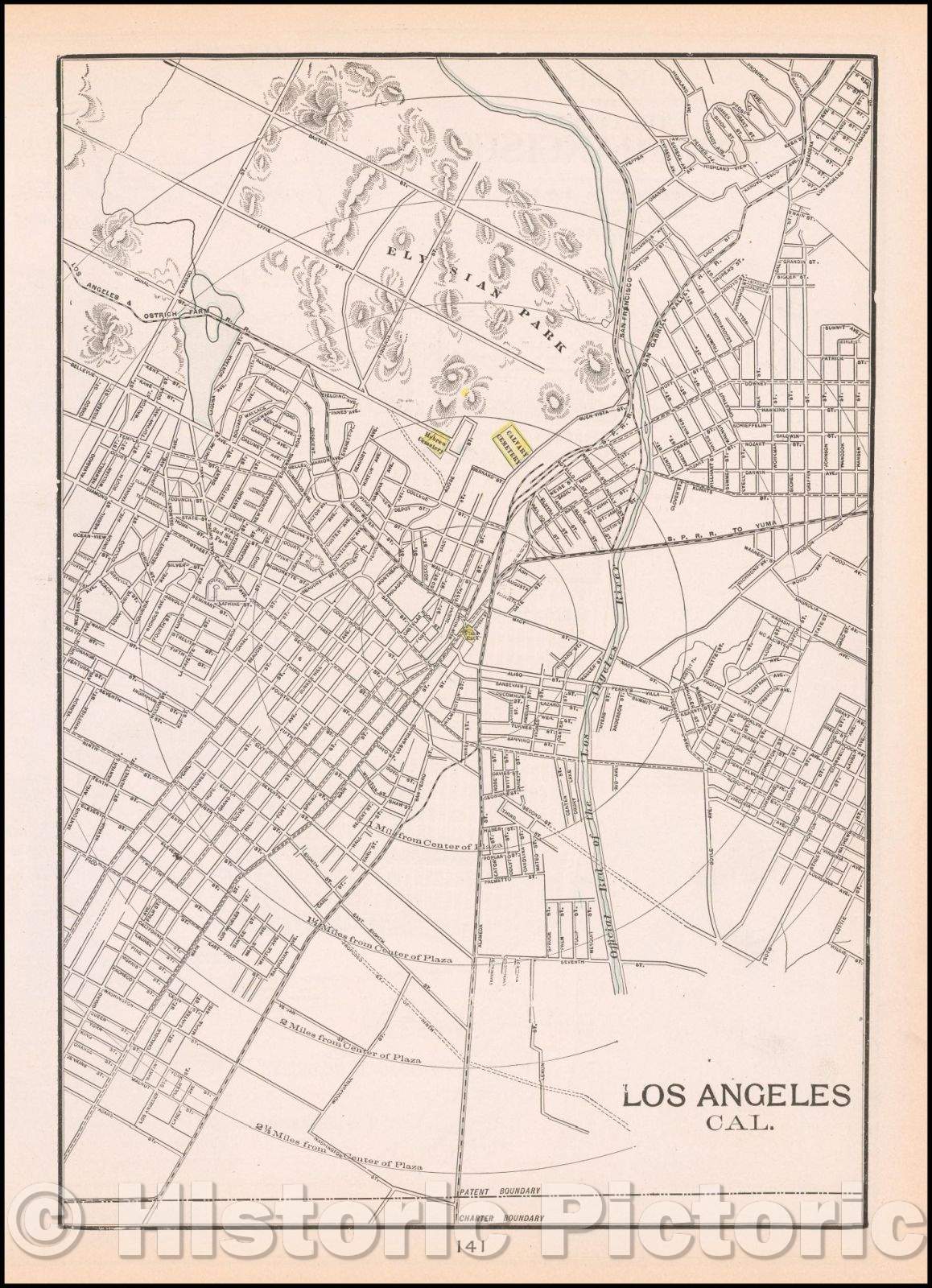 • .Historic Map - Los Angeles Cal. / Los Angeles and Ostrich Farm Rail Road, 1899, George F. Cram - Vintage Wall Art