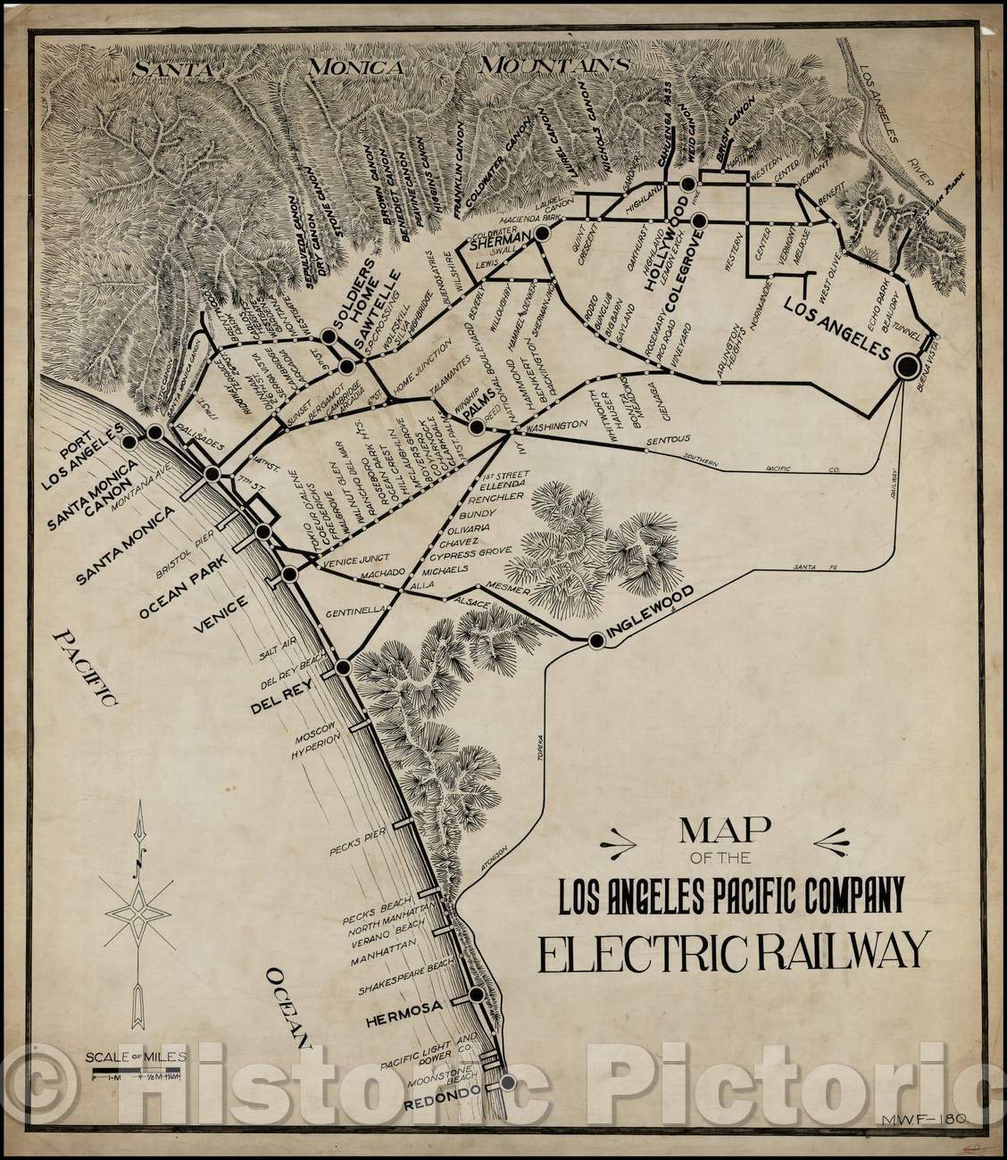 Historic Map - Map of the Los Angeles Pacific Company Pacific Electric Railway, 1910, Pacific Electric Railway - Vintage Wall Art