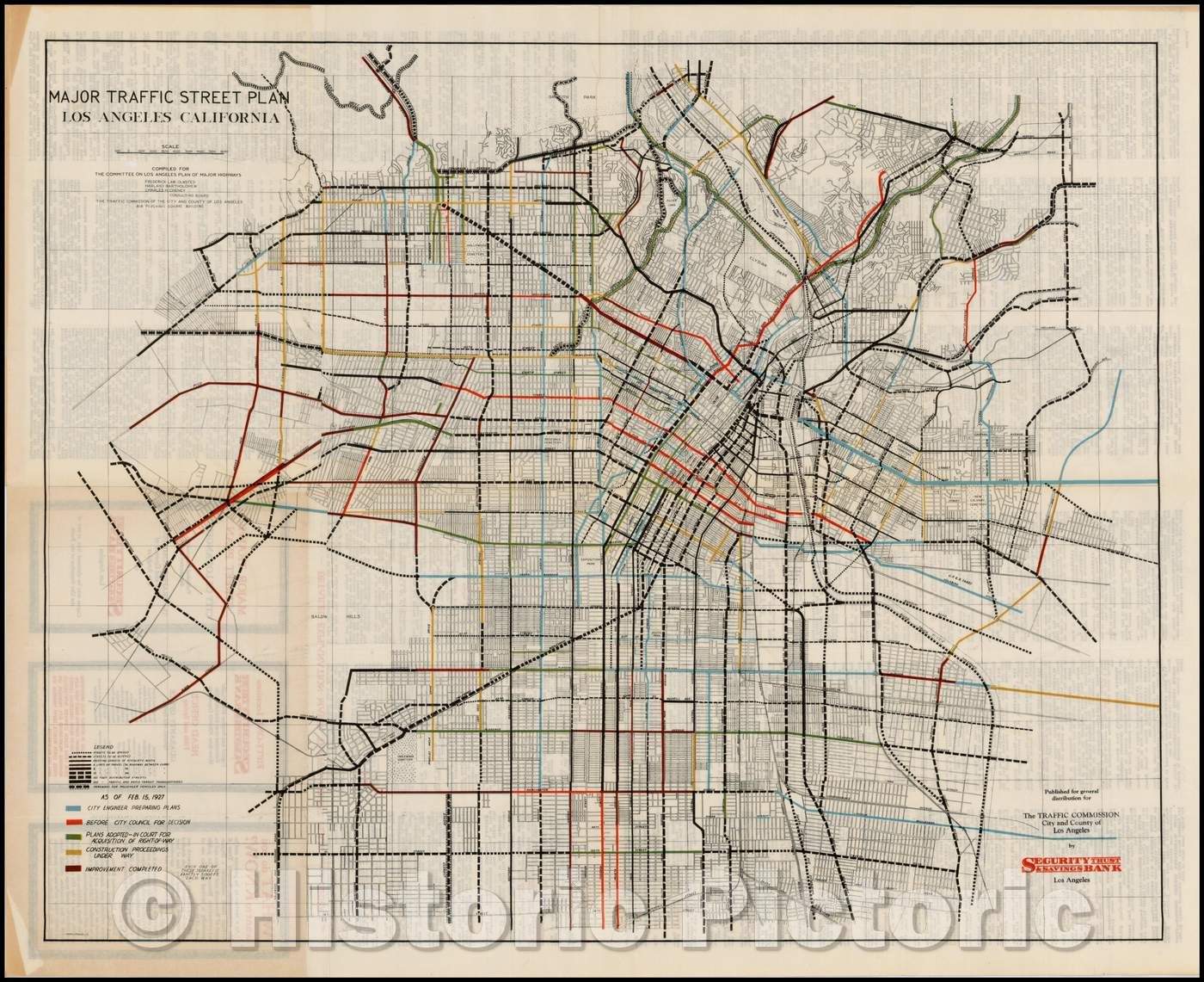 Historic Map - Major Traffic Street Plan Los Angeles California.The Committee On Los Angeles Plan of Major Highways. Frederick Law Olmsted, 1927 v1
