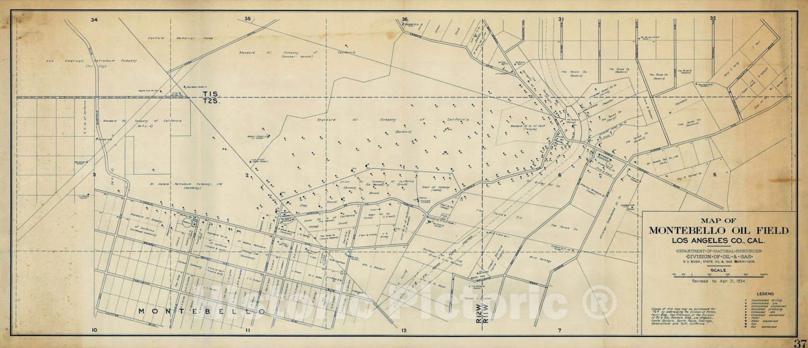 Historic Map : Map of Montebello Oil Field, Los Angeles, Cal. Department of Natural Resources, 1935, California Department of Natural Resources, Vintage Wall Art