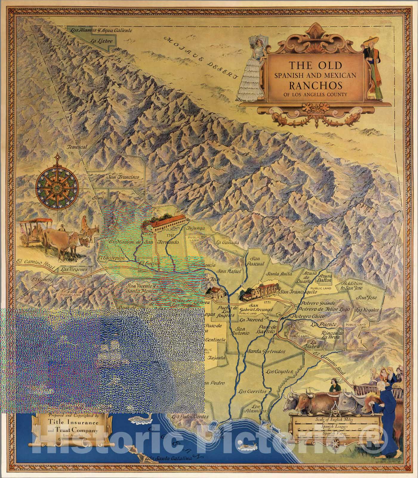 Historic Map - The Old Spanish and Mexican Ranchos of Los Angeles County, 1937, Title Insurance & Trust Company - Vintage Wall Art