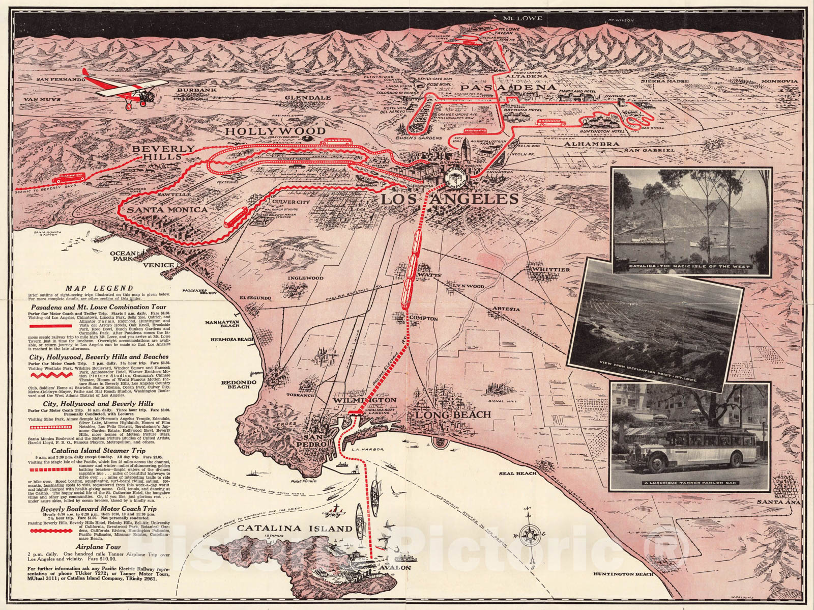 Historic Map - Special Sightseeing Map of Los Angeles and Vicinity, 1930 - Vintage Wall Art