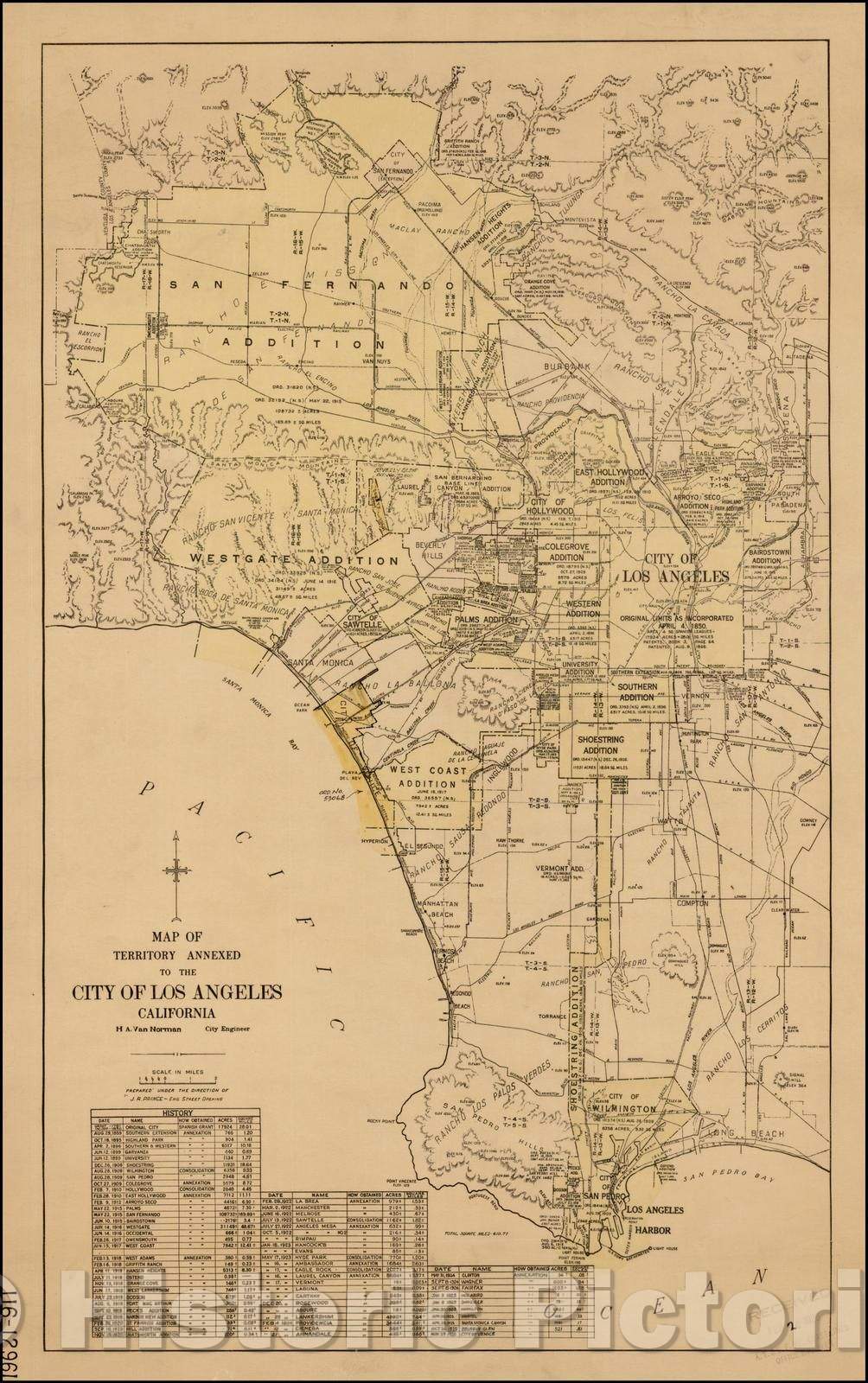 Historic Map - Map of Territory Annexed to the City of Los Angeles California, 1925, Los Angeles Board of Public Works - Vintage Wall Art