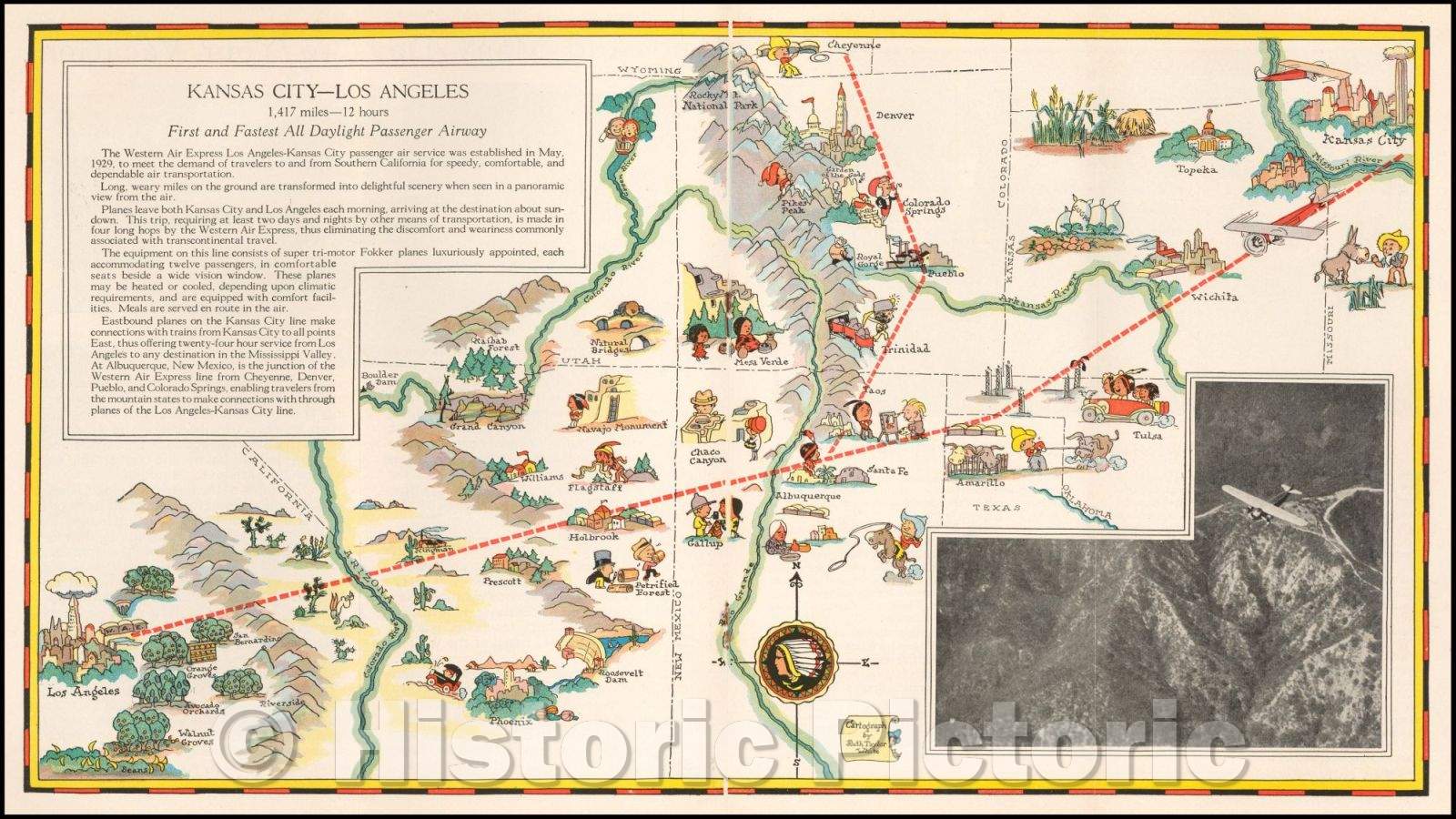 Historic Map - Western Air Express, Kansas City - Los Angeles, 1929, Ruth Taylor White - Vintage Wall Art
