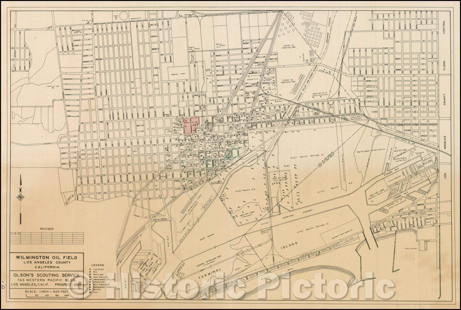 Historic Map - Wilmington Oil Field Los Angeles County California, 1937, Olson's Scouting Service - Vintage Wall Art