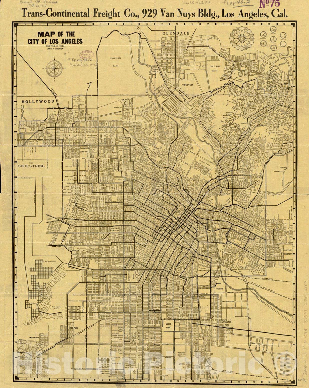 Historical Map, 1914 Map of the city of Los Angeles, Vintage Wall Art