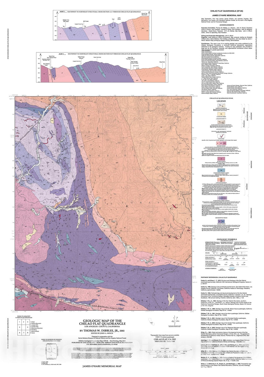 Map : Geologic map of the Chilao Flat quadrangle, Los Angeles County, California, 2002 Cartography Wall Art :