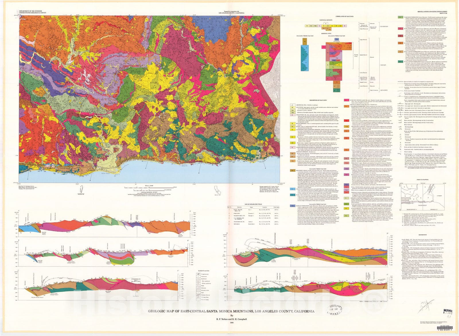 Map : Geologic map of east-central Santa Monica Mountains, Los Angeles County, California, 1980 Cartography Wall Art :