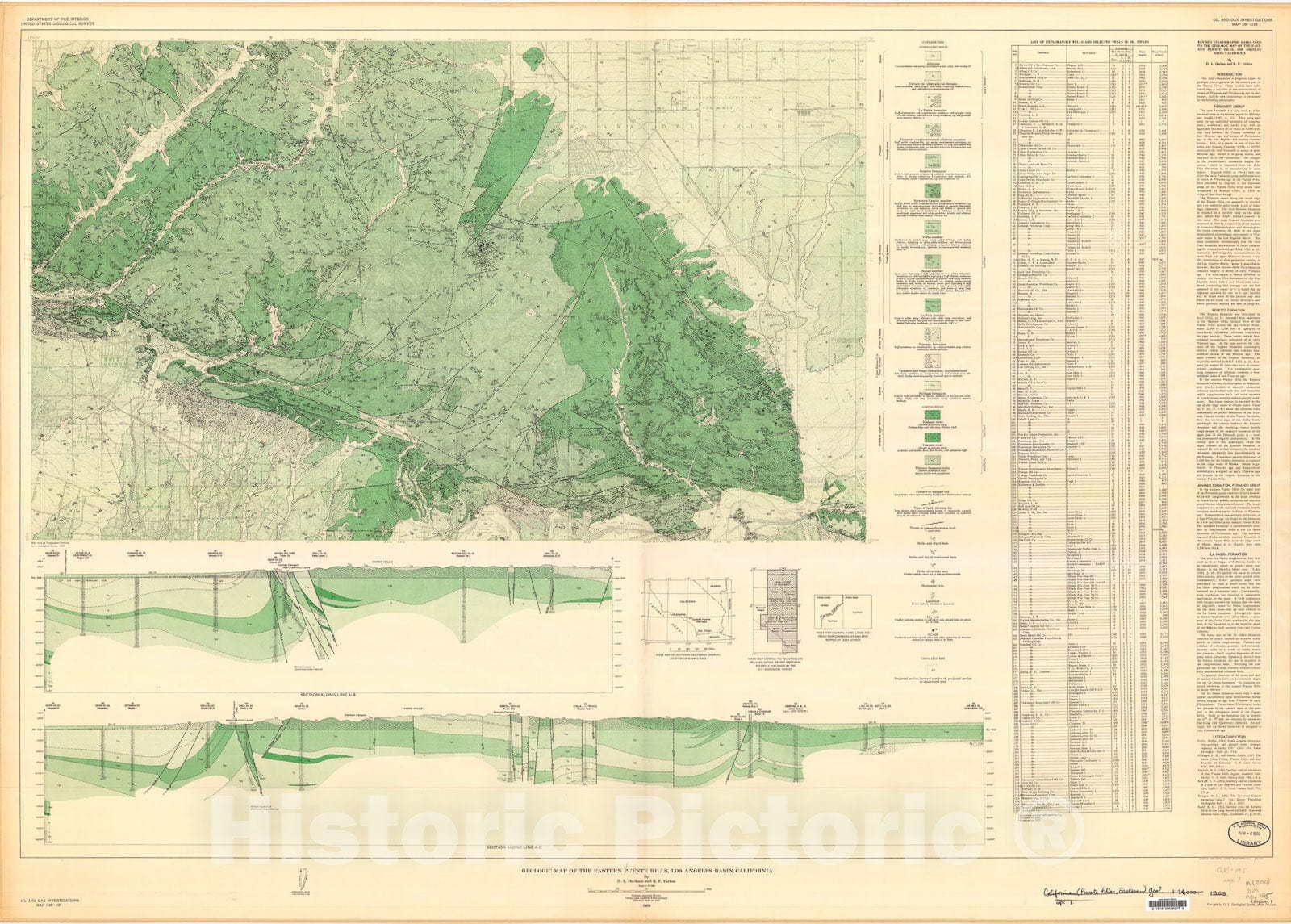Map : Geologic map of the eastern Puente Hills, Los Angeles basin, California, 1959 Cartography Wall Art :