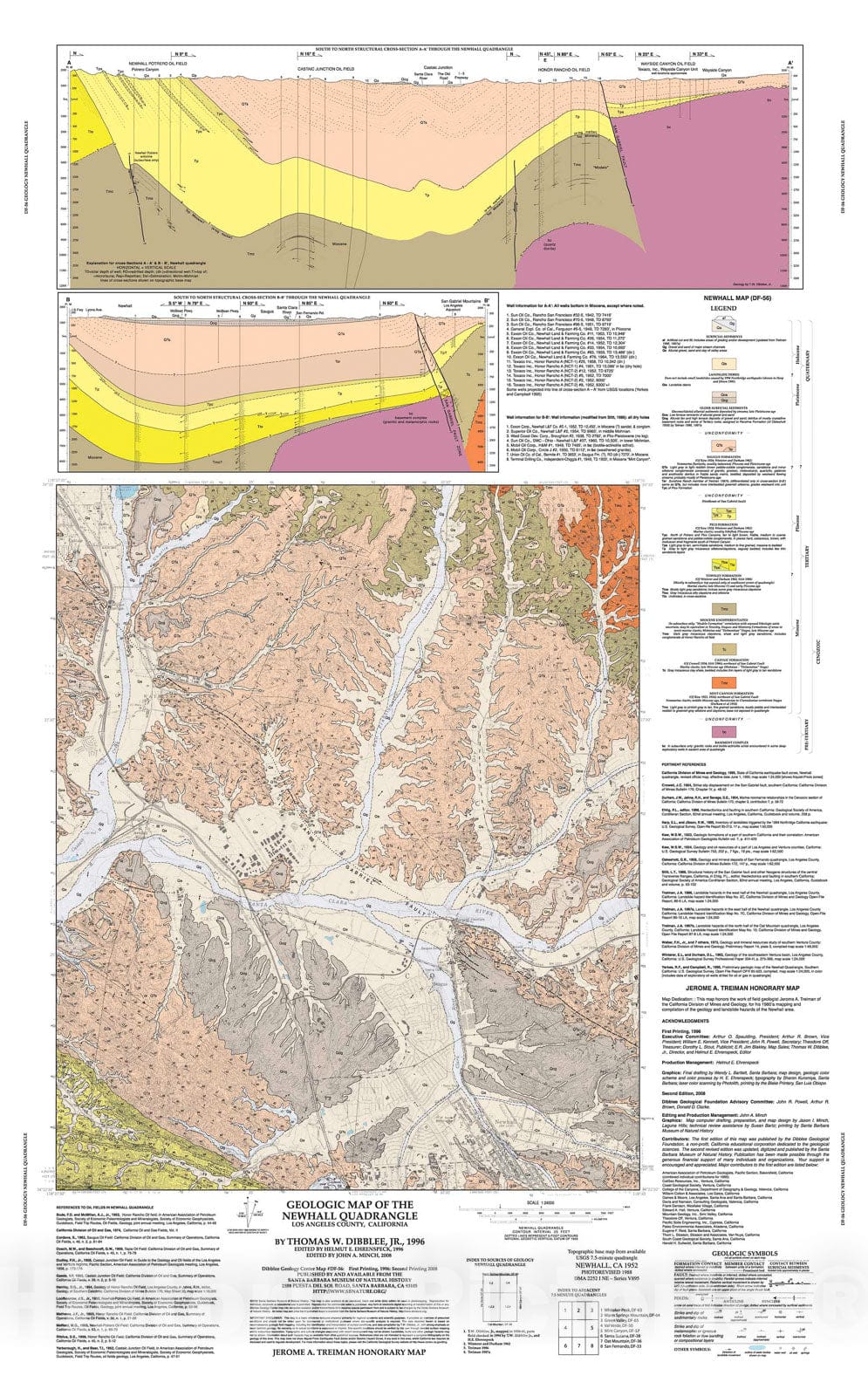 Map : Geologic map of the Newhall quadrangle, Los Angeles County, California, 1996 Cartography Wall Art :