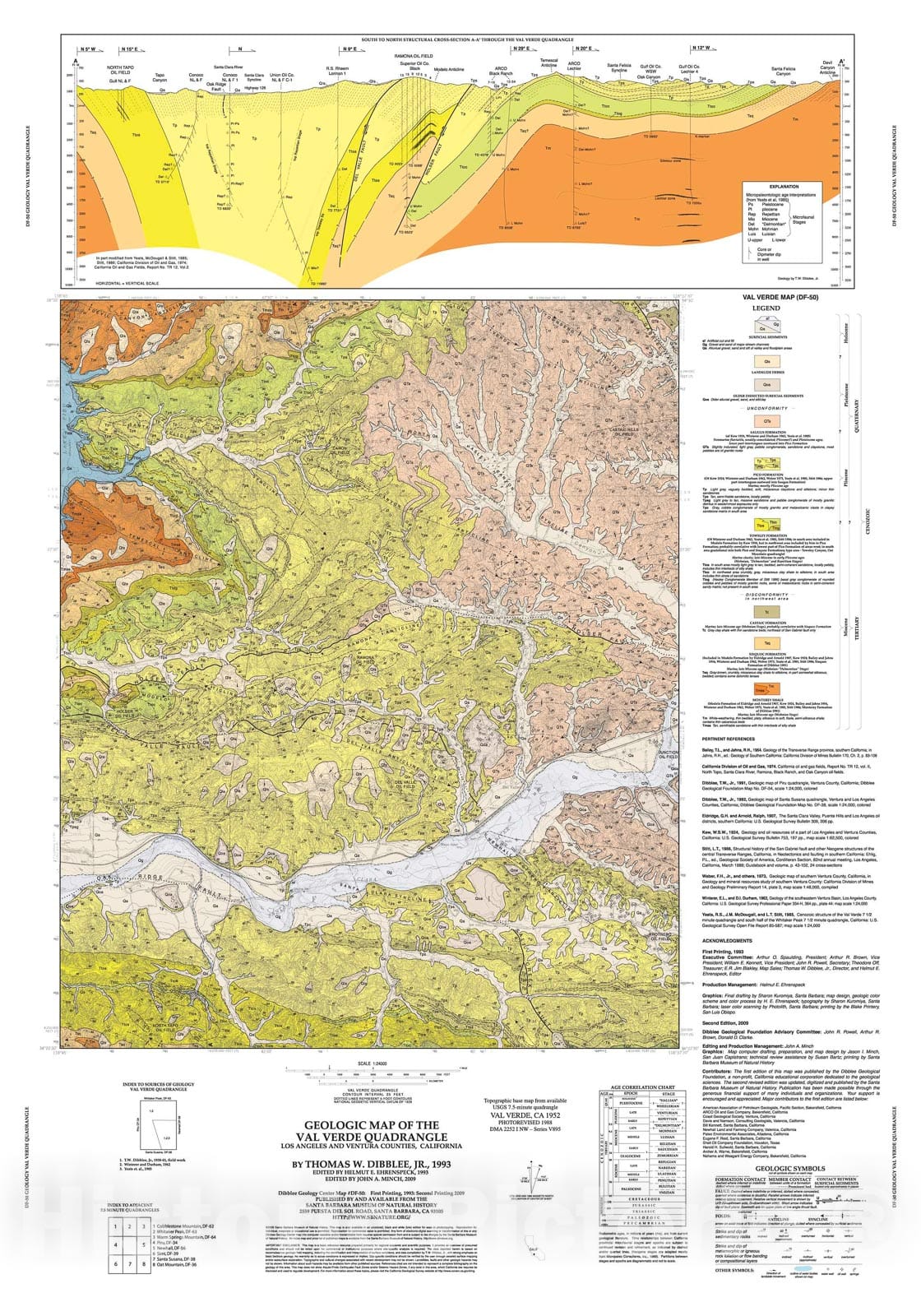 Map : Geologic map of the Val Verde quadrangle, Los Angeles and Ventura Counties, California, 1993 Cartography Wall Art :