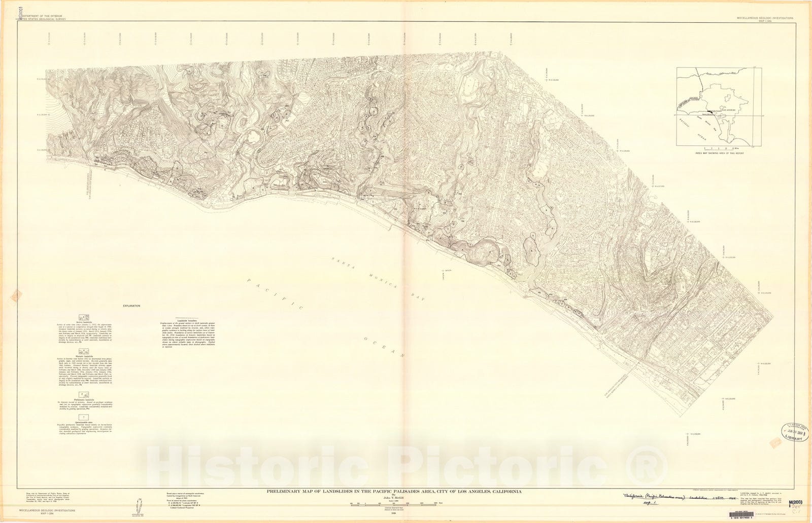 Map : Preliminary map of landslides in the Pacific Palisades area, City of Los Angeles, California, 1959 Cartography Wall Art :